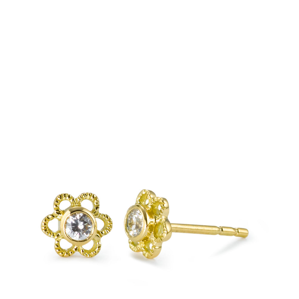 Ohrstecker 750/18 K Gelbgold Zirkonia 2 Steine Blume Ø5.5 mm