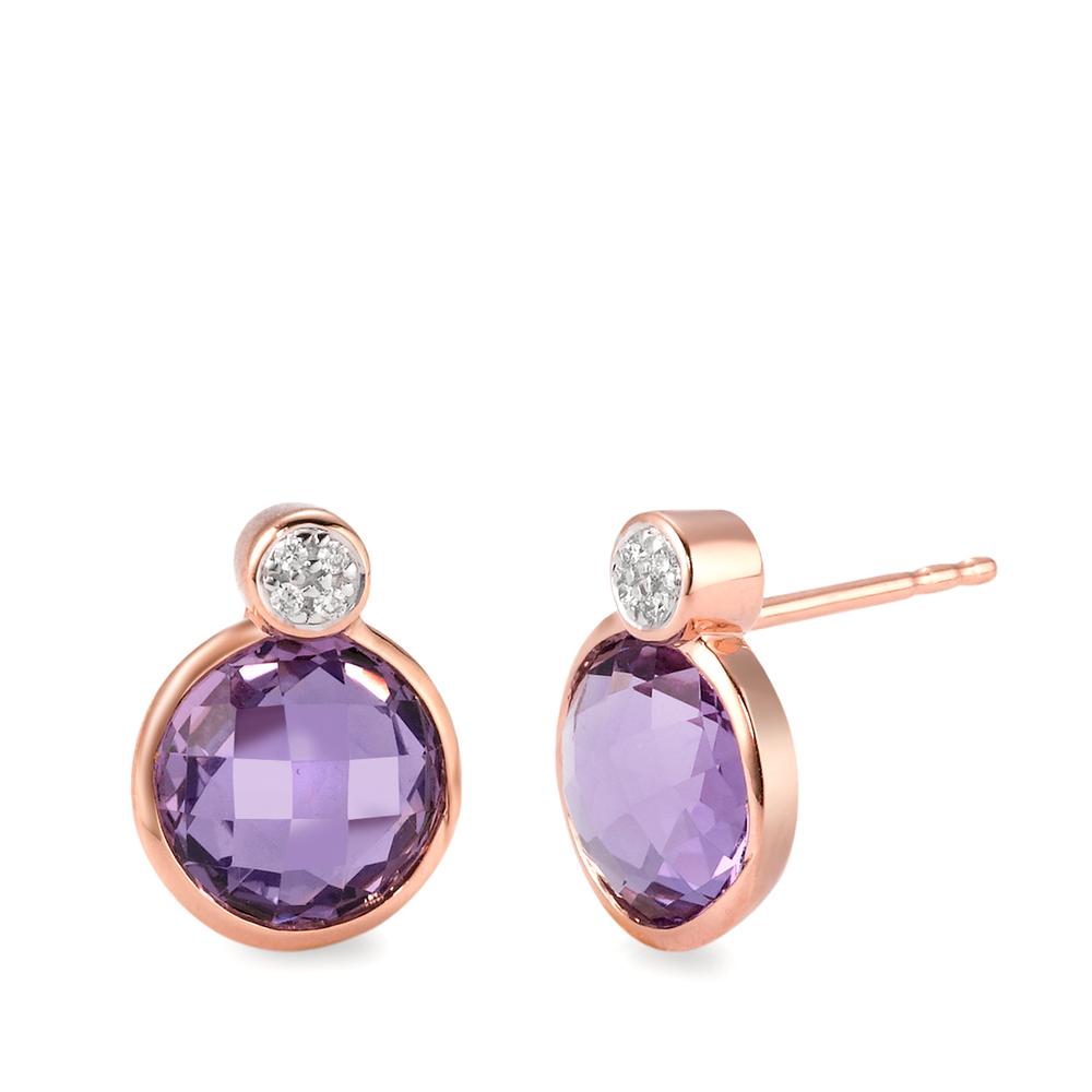 Ohrstecker 750/18 K Rotgold Amethyst violett, 0.03 ct, 8 Steine, Brillantschliff, w-si