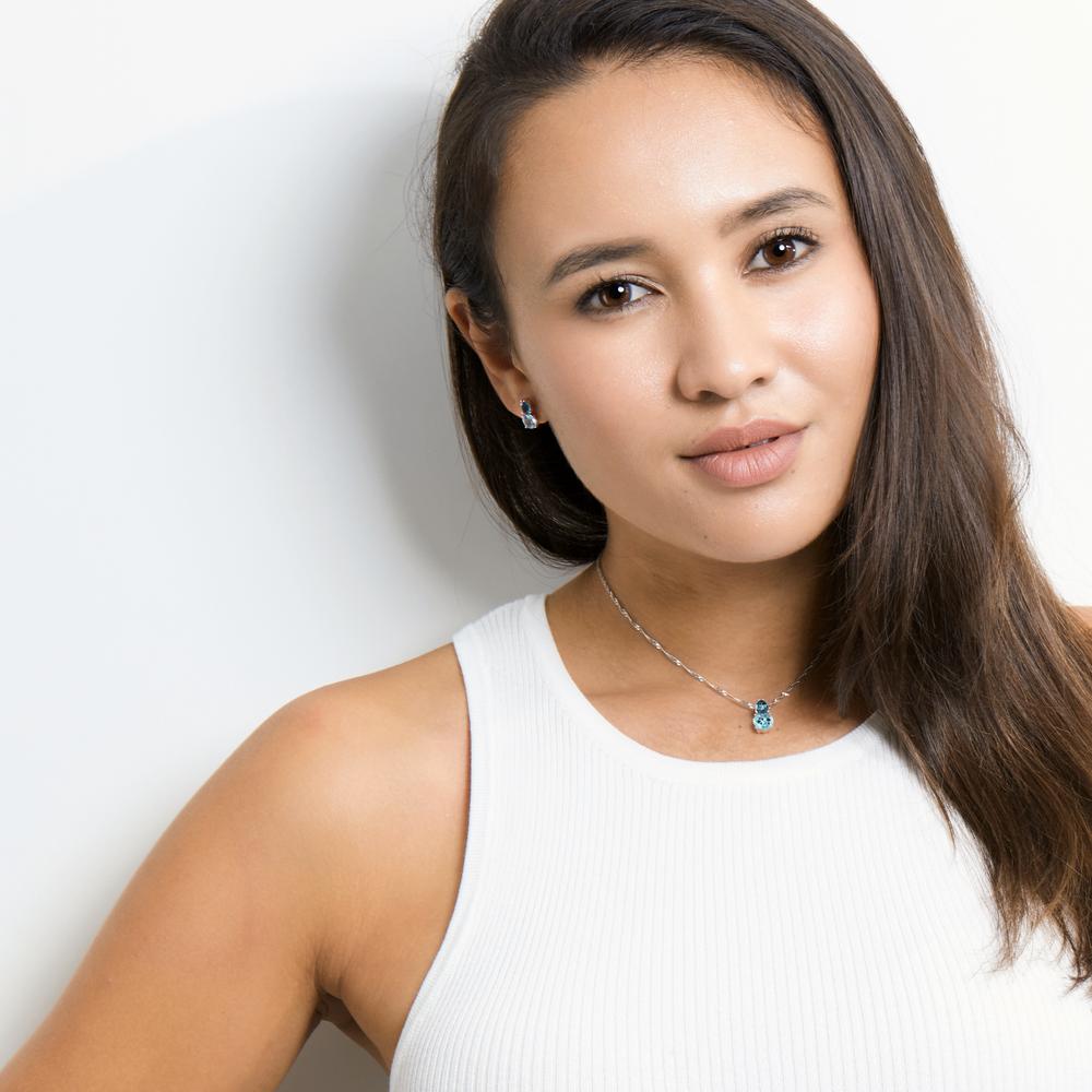 Elegante Damen-Ohrstecker aus 750er Weißgold mit zwei funkelnden London Blue Topasen in Tropfen- und Rundschliff. Das stilvolle Design kombiniert zeitlose Eleganz mit modernem Chic und verleiht jedem Look einen edlen Farbakzent. Perfekt für besondere Anlässe und den Alltag.