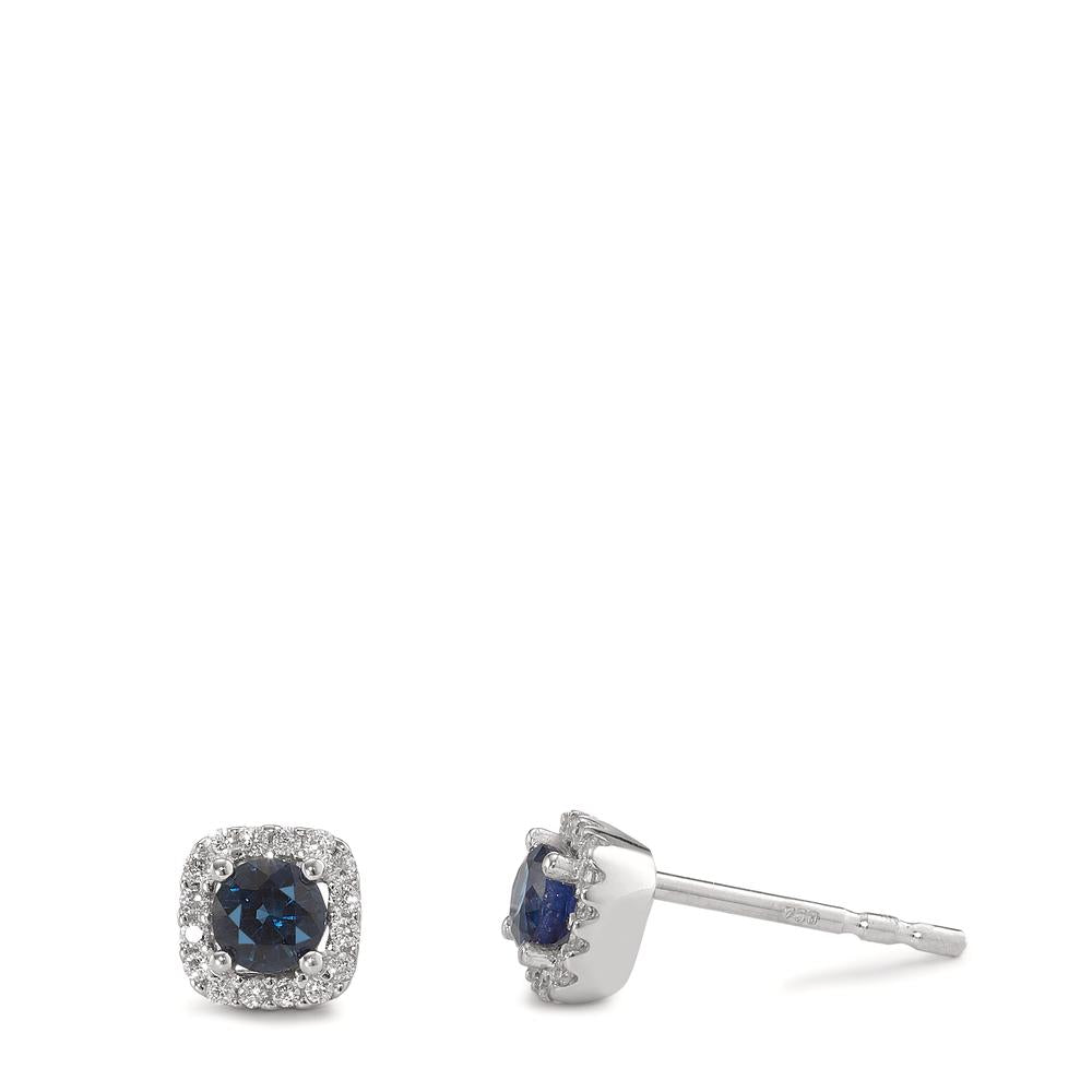 Ohrstecker 750/18 K Weissgold Saphir blau, 2 Steine, Diamant weiss, 0.10 ct, 24 Steine, w-si Ø5 mm