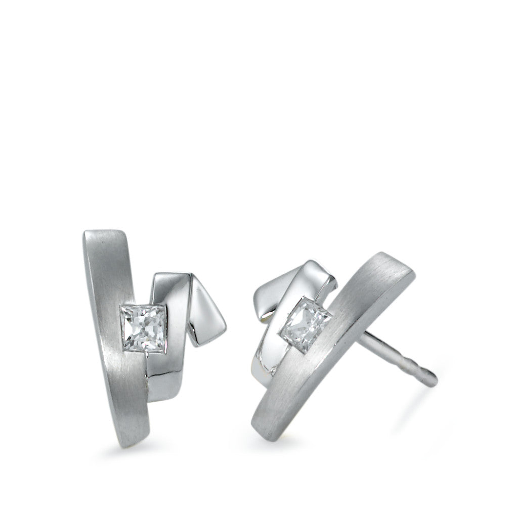 Elegante Damen Ohrstecker aus 750er Weißgold, veredelt mit funkelnden Zirkonia-Steinen. Das moderne Design vereint mattierte und polierte Flächen zu einem stilvollen Accessoire, das jedem Outfit einen edlen Touch verleiht. Perfekt für besondere Anlässe oder den Alltag.