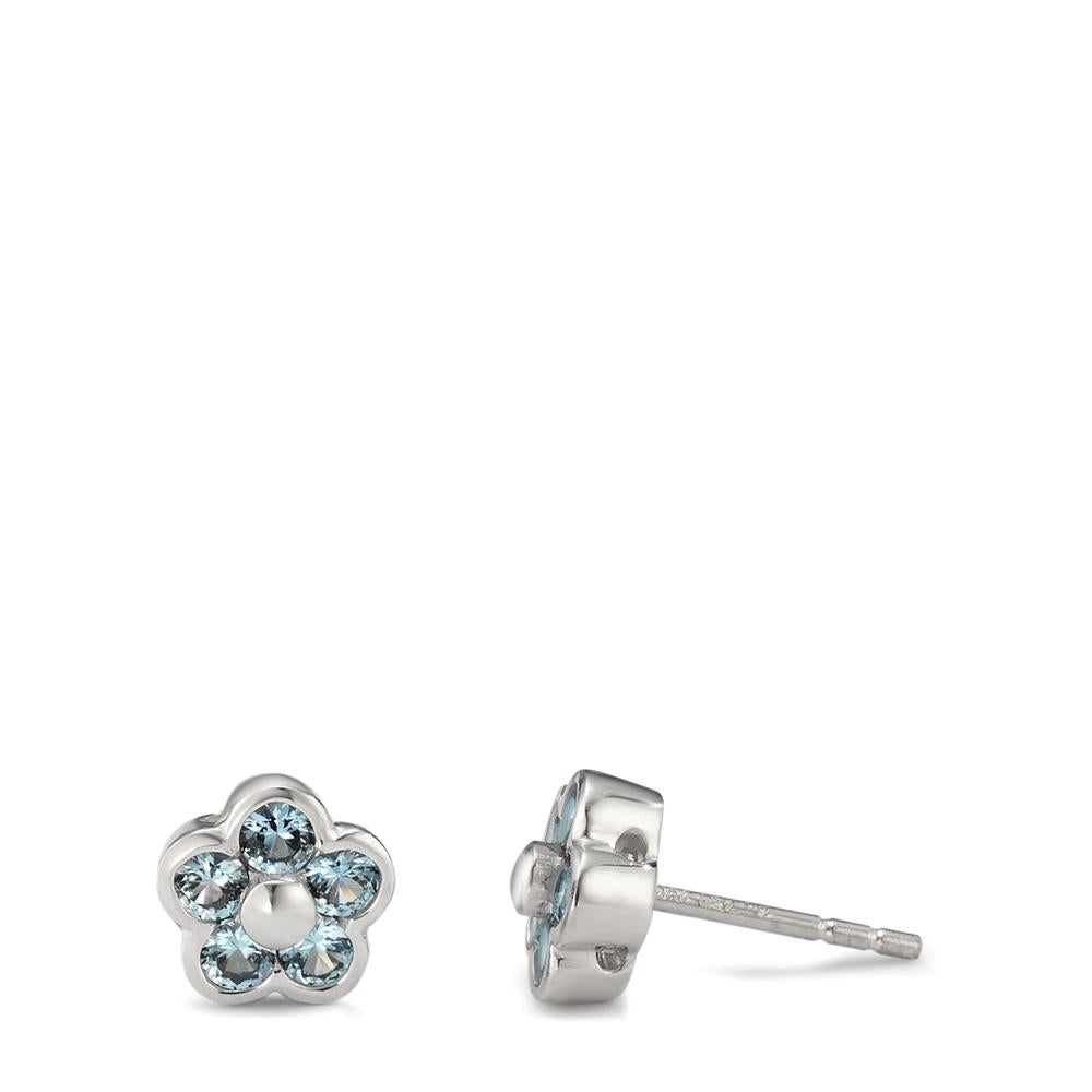 Ohrstecker 750/18 K Weissgold Zirkonia hellblau, 10 Steine Blume Ø7 mm