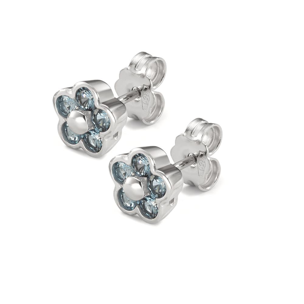 Diese zauberhaften Ohrstecker für Mädchen sind aus 750er Weißgold gefertigt und in Form einer Blume gestaltet. Funkelnde Zirkonia-Steine in hellblau bringen besonderen Glanz und machen sie zum idealen Accessoire für jeden Anlass. Elegant und zeitlos!