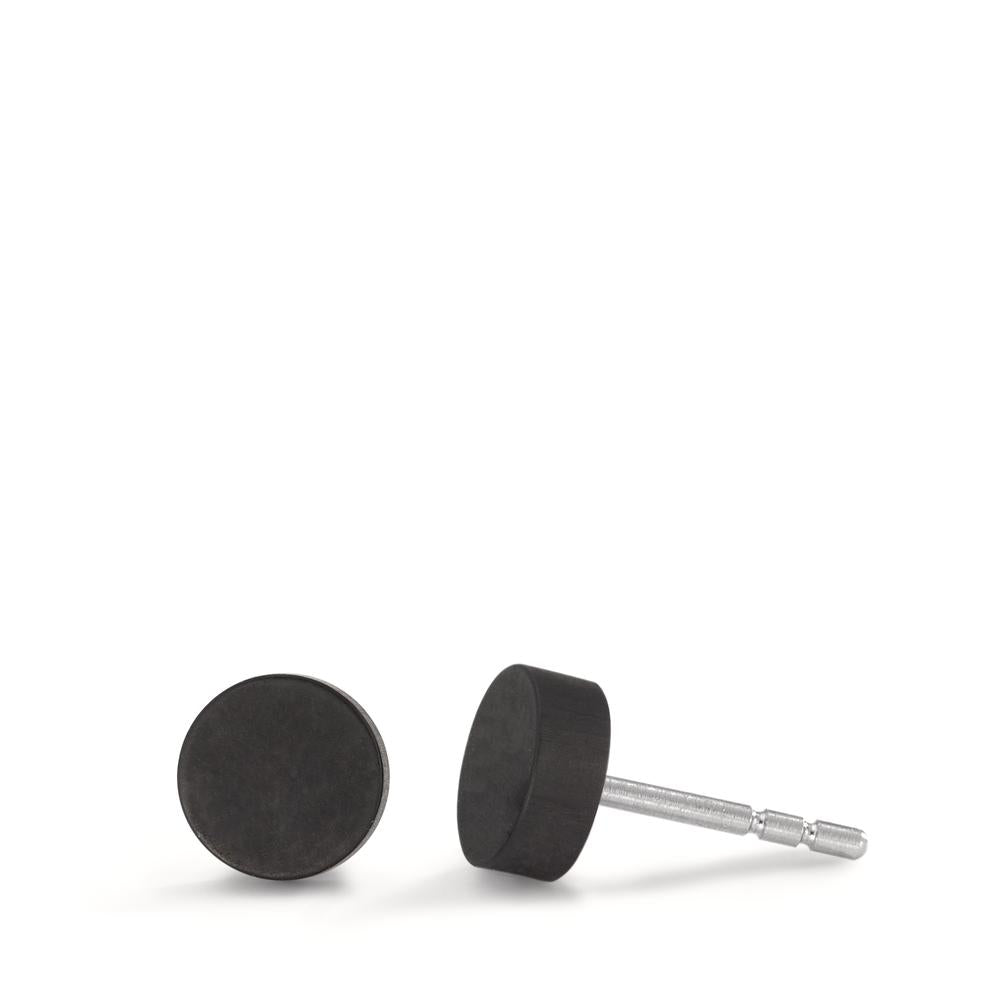 Ohrstecker Disc Ø6mm aus Carbon und Edelstahl, Stift und Verschluss aus Edelstahl