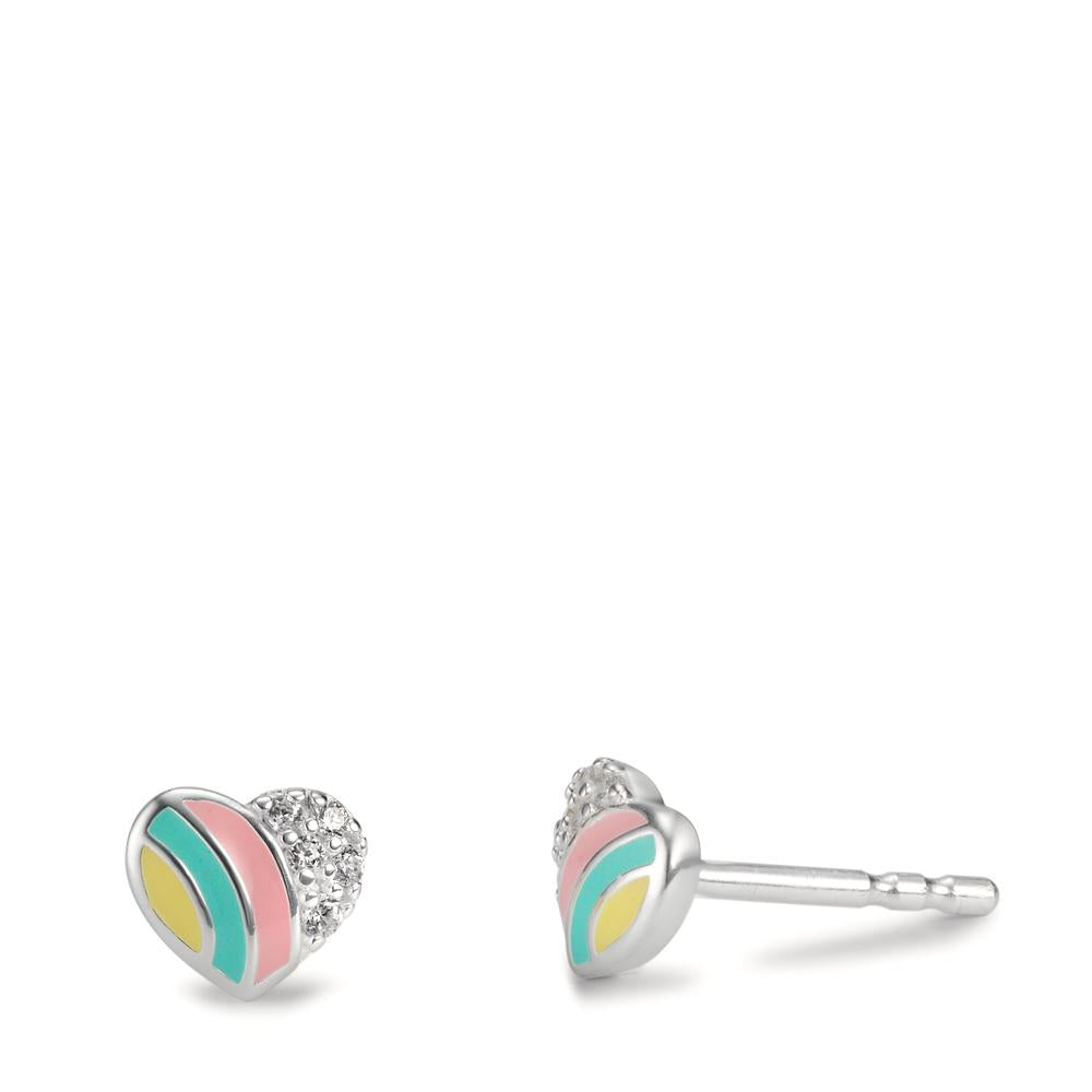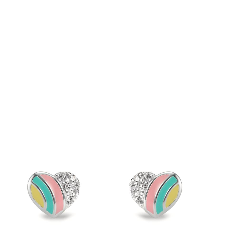 Ohrstecker Silber Zirkonia 10 Steine emailliert Herz Ø5.5 mm