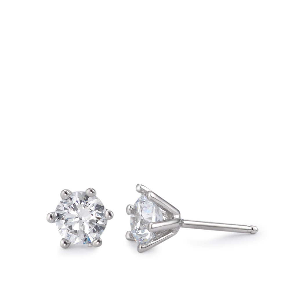 Ohrstecker Silber Zirkonia 2 Steine rhodiniert Ø6 mm