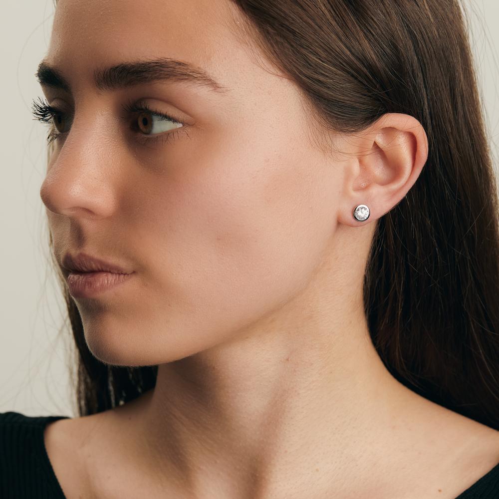 Ohrstecker Silber Zirkonia 2 Steine rhodiniert Ø7 mm