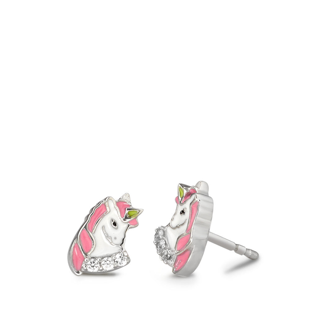 Ohrstecker Silber Zirkonia 6 Steine lackiert Einhorn Ø7.5 mm