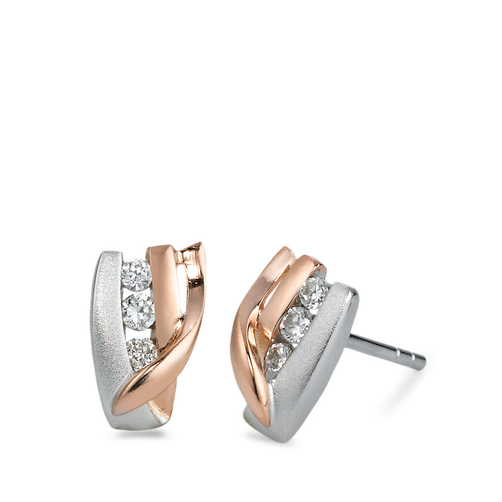 Elegante Damen Ohrstecker aus hochwertigem Silber mit modischer zweifarbiger Optik in Silber und Roségold. Verziert mit funkelnden Zirkonia-Steinen, die jeden Look stilvoll ergänzen. Ein zeitloser Schmuckklassiker für jeden Anlass.