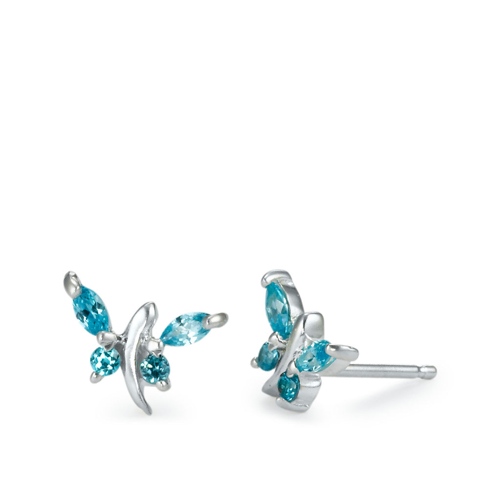 Ohrstecker Silber Zirkonia blau, 8 Steine