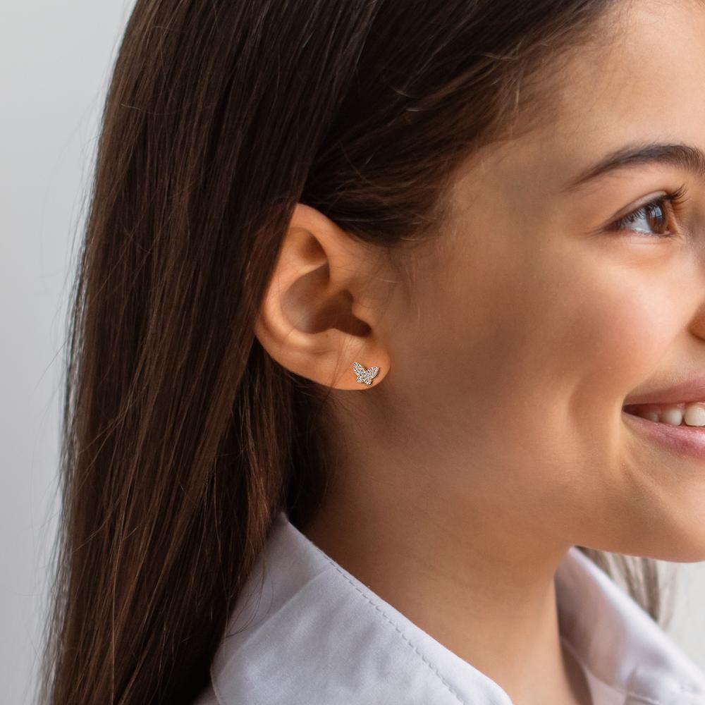 Elegante Damen-Ohrstecker aus hochwertigem Silber in Schmetterlingsform, verziert mit funkelnden Zirkonia-Steinen. Das filigrane Design bringt Leichtigkeit und Glanz in jeden Look – perfekt für jeden Anlass und stilbewusste Frauen. Ein zauberhaftes Accessoire, das begeistert!