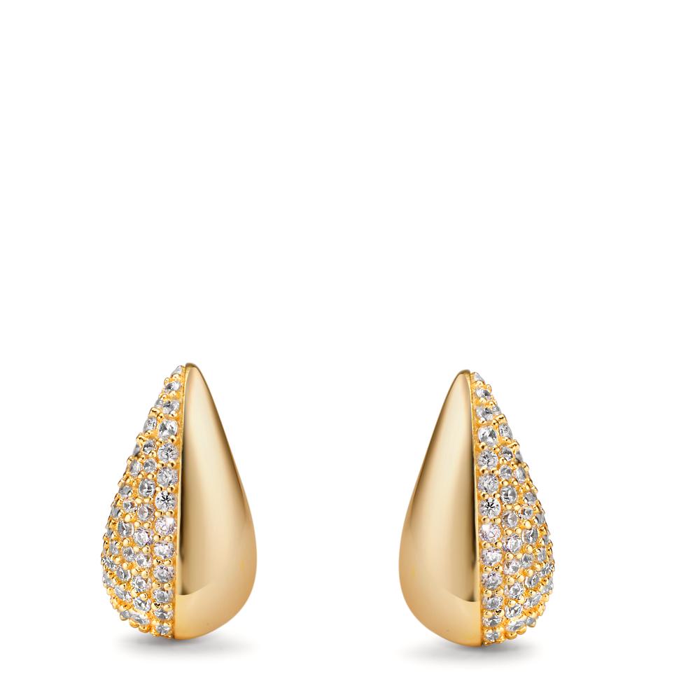 Elegante Damen Ohrstecker in Tropfenform aus feinem Silber mit gelbgoldener Vergoldung. Halbseitig besetzt mit funkelnden Zirkonia-Steinen, die für strahlenden Glanz sorgen. Ein zeitloses Schmuckstück, das jedem Outfit einen edlen Akzent verleiht.
