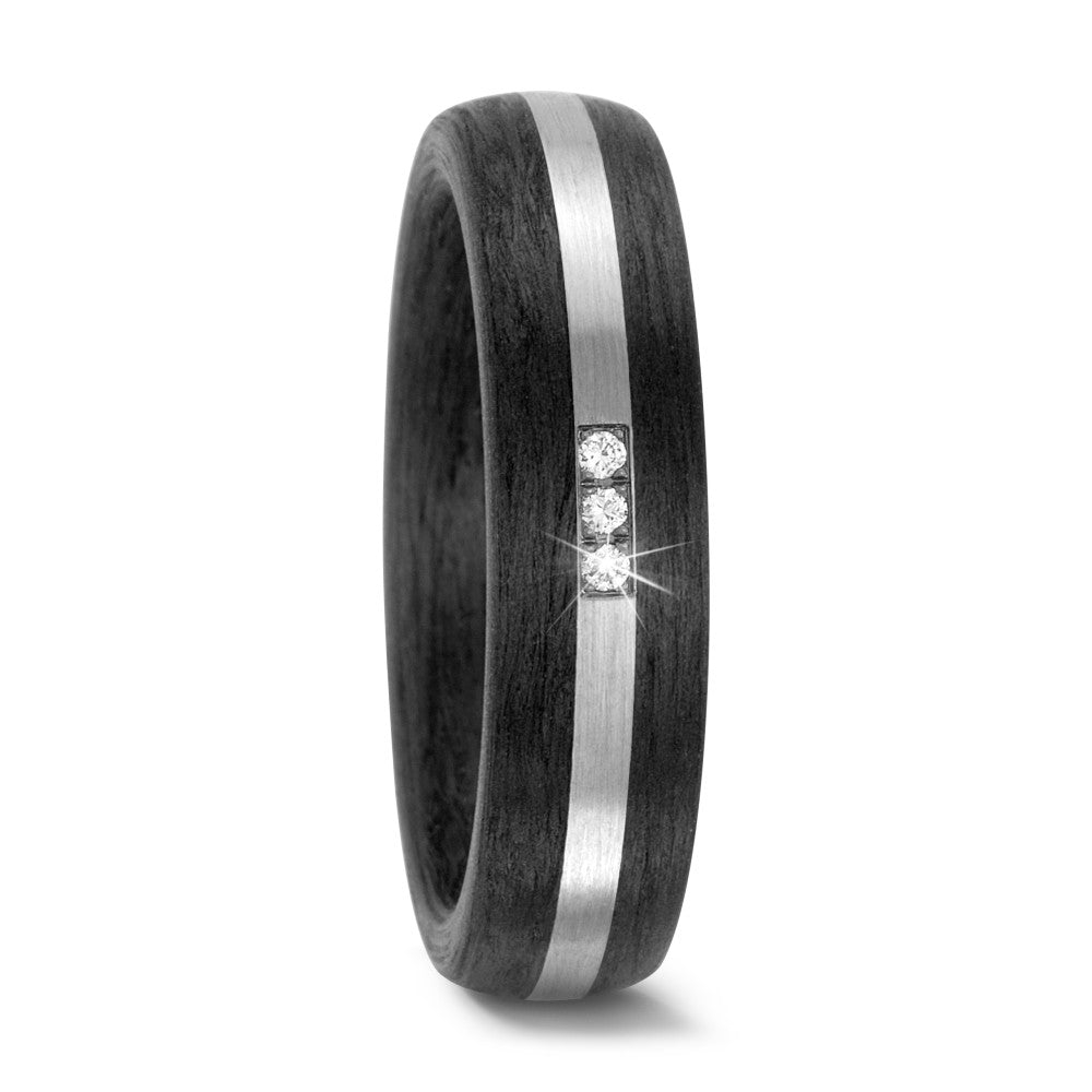 Eleganter Damen-Partnerring aus 500er Palladium und edlem Carbon. Der Ring besticht durch eine moderne Kombination aus mattem Palladiumstreifen und dunklem Carbon, verziert mit drei funkelnden Diamanten, die für zeitlose Eleganz stehen. Perfekt für besondere Momente.