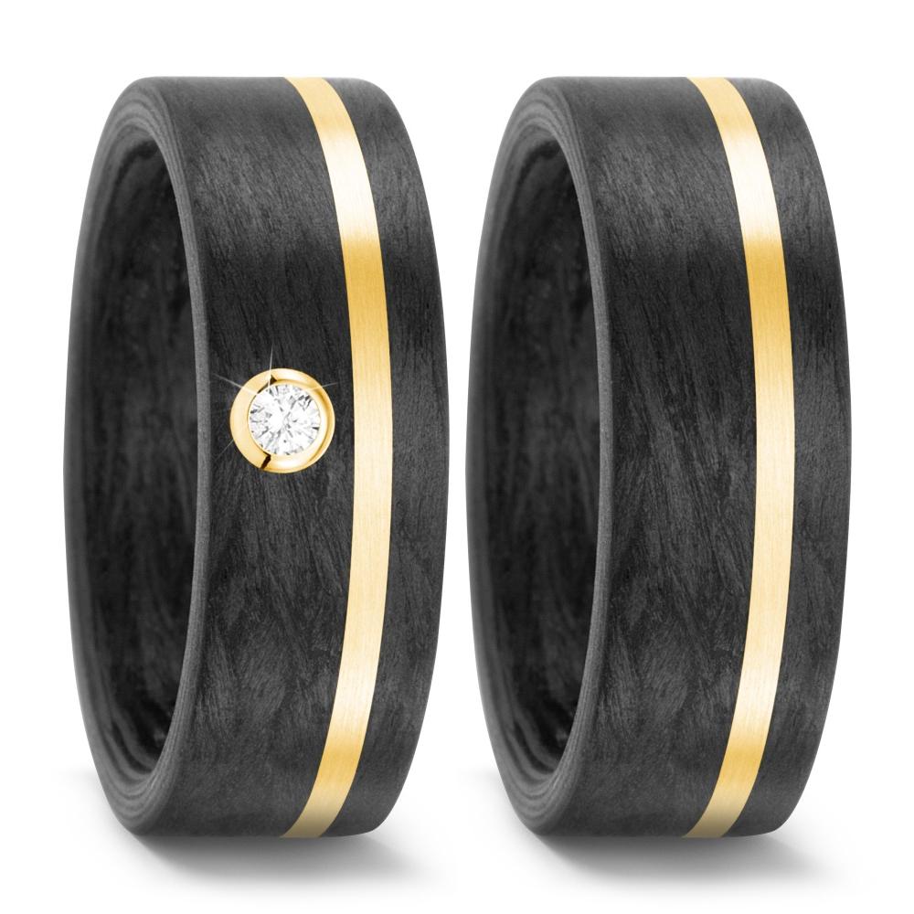 Partnerring 750/18 K Gelbgold, Carbon Diamant weiss, 0.05 ct, w-si