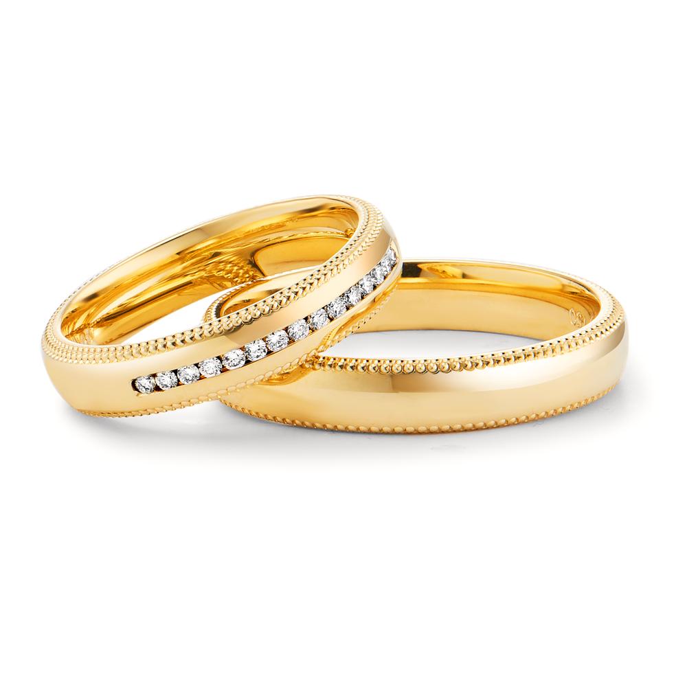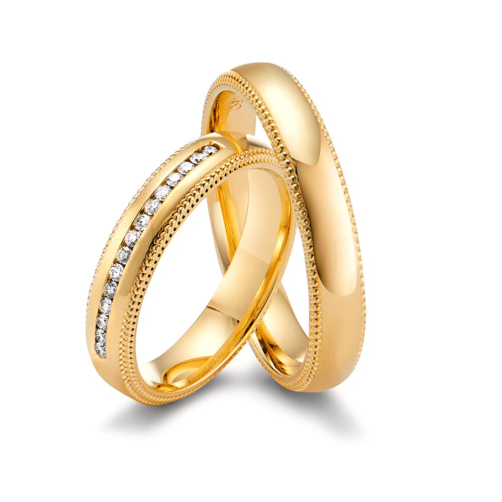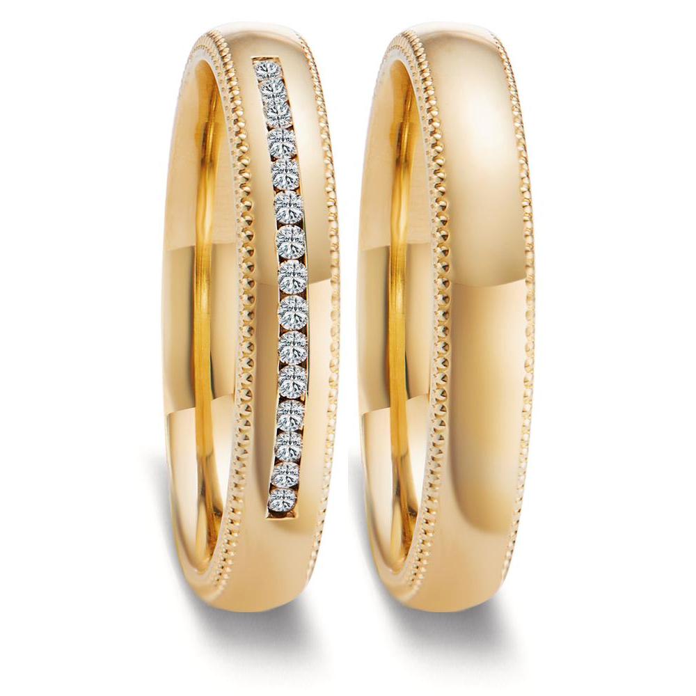 Zeitlos eleganter Damen-Partnerring aus 750er Gelbgold, veredelt mit einer funkelnden Diamantreihe. Die feine Milgrain-Verzierung am Rand verleiht dem Ring zusätzlichen Charme. Ein perfektes Symbol für Liebe und Verbundenheit, das stilvoll und edel zugleich ist.