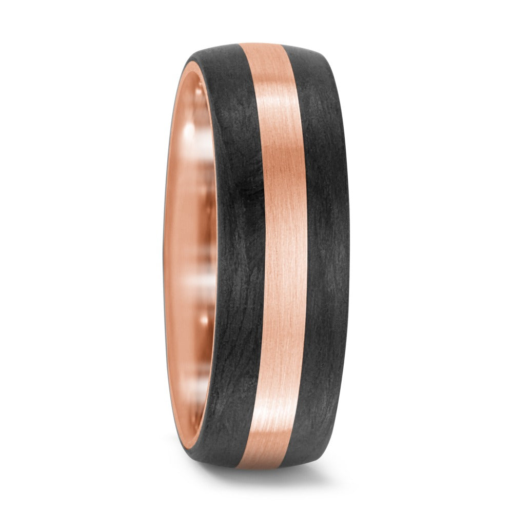 Eleganter Partnerring aus 750er Roségold und Carbon. Das Zusammenspiel von warmem Roségold und modernem Carbon schafft einen einzigartigen Kontrast. Perfekt für Paare, die zeitlose Eleganz mit einem individuellen Touch schätzen. Hochwertige Verarbeitung für jeden Tag.