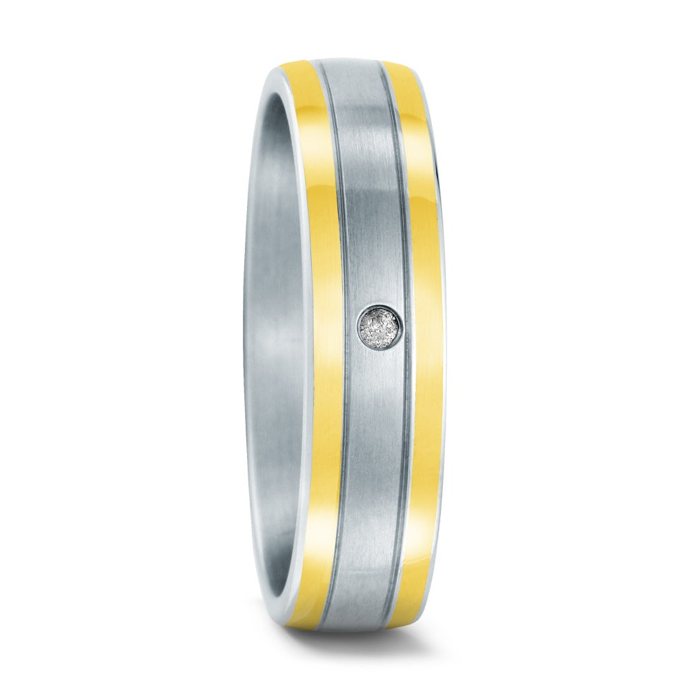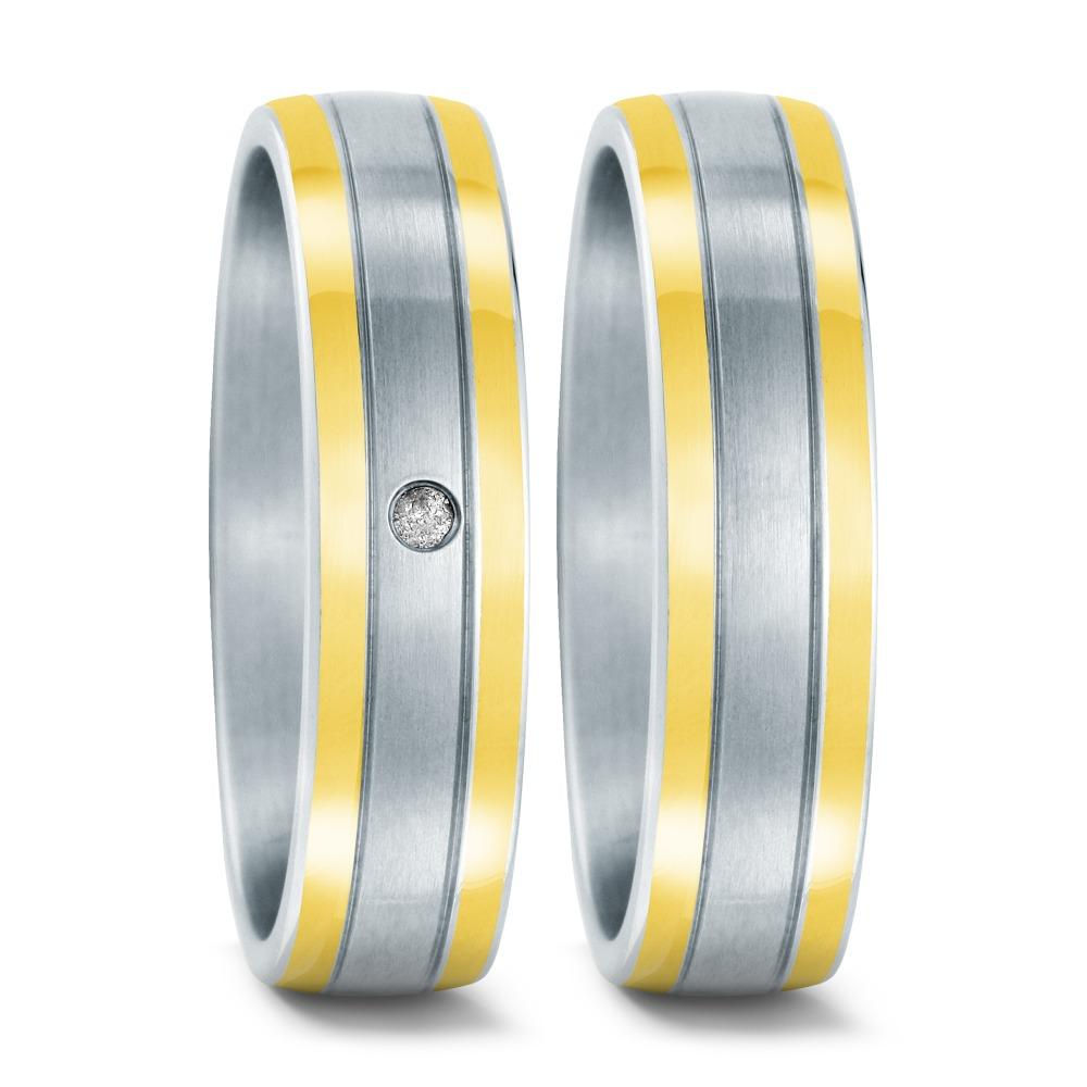 Partnerring Edelstahl, 585/14 K Gelbgold Diamant 0.01 ct, w-pi2