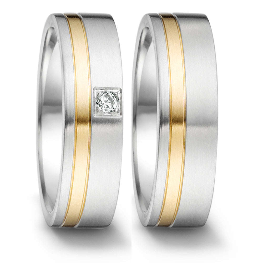 Partnerring Edelstahl, 750/18 K Gelbgold