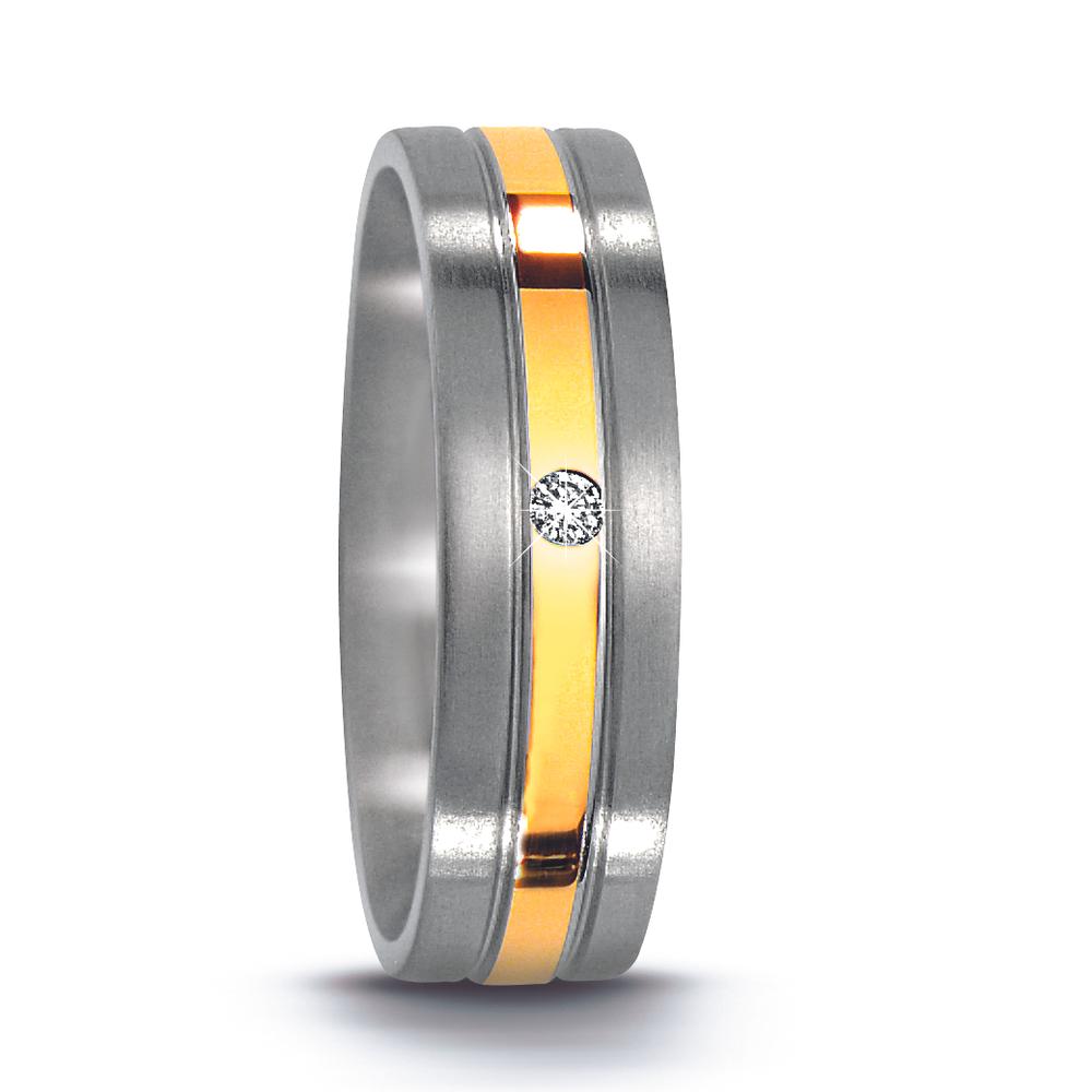 Partnerring Edelstahl, 750/18 K Gelbgold Diamant 0.02 ct, w-si