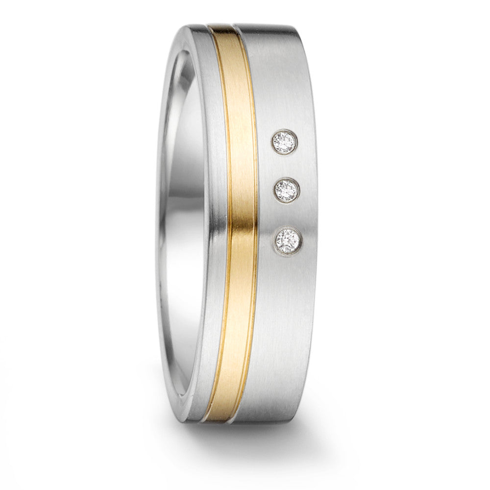 Partnerring Edelstahl, 750/18 K Gelbgold Diamant 0.024 ct, 3 Steine, tw-si
