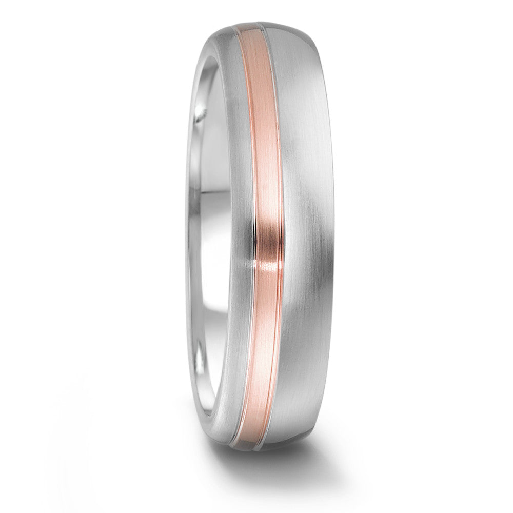 Moderner Partnerring aus hochwertigem Edelstahl mit edlem 750er Roségold in der Mitte. Die Kombination aus robustem Edelstahl und warm schimmerndem Roségold verleiht dem Ring zeitlose Eleganz und perfekte Alltagstauglichkeit – ideal für Paare, die Stil und Beständigkeit suchen.