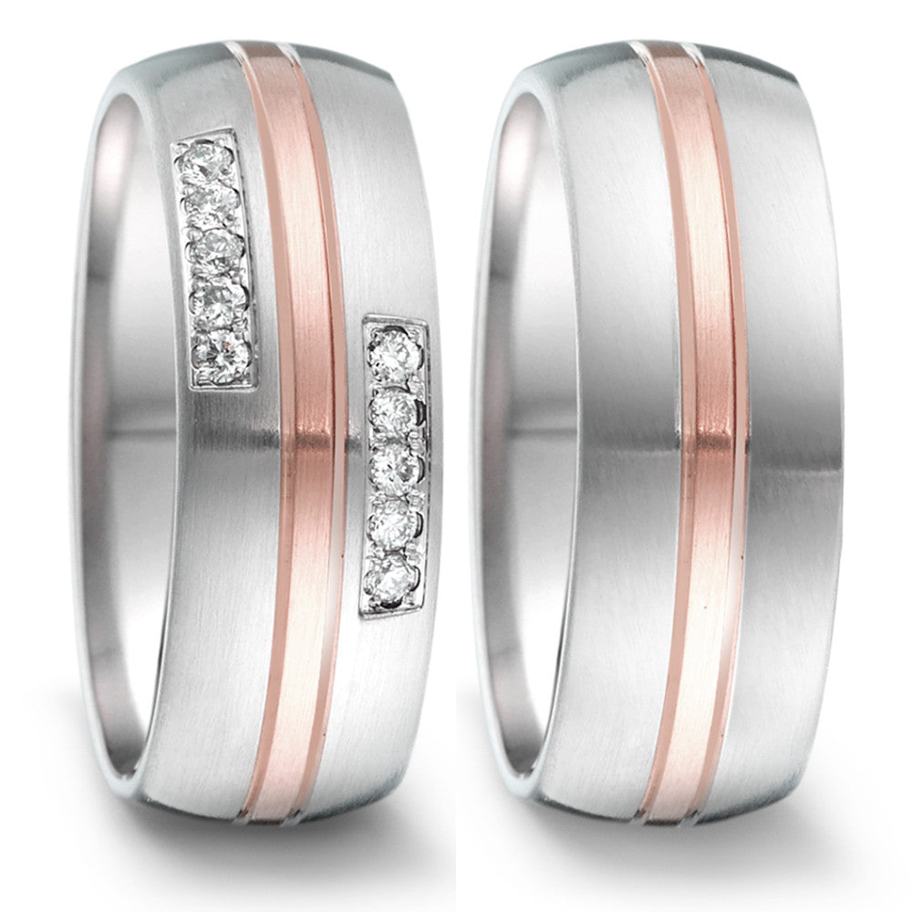 Partnerring Edelstahl, 750/18 K Rosegold Diamant 0.12 ct, 10 Steine, tw-si