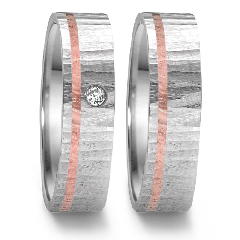 Partnerring Edelstahl, 750/18 K Rotgold Diamant 0.04 ct, w-si