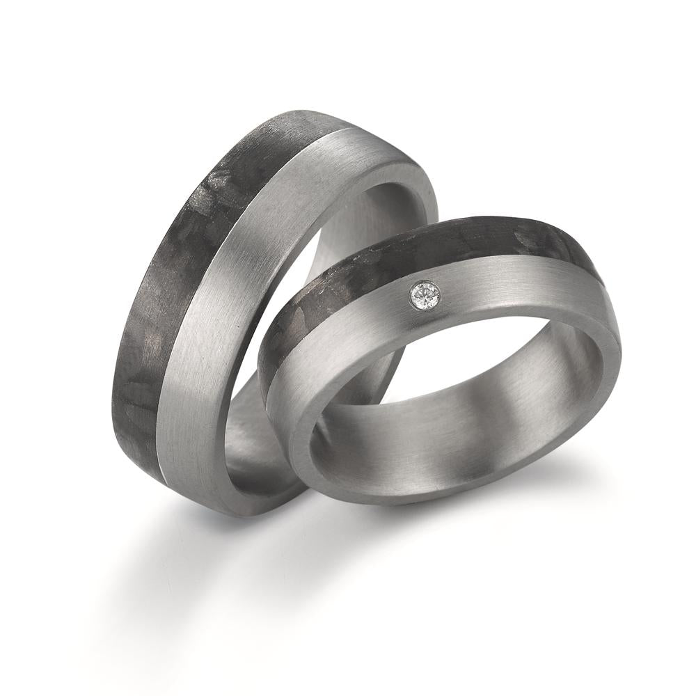 Partnerring Edelstahl, Carbon Diamant 0.02 ct, w-si