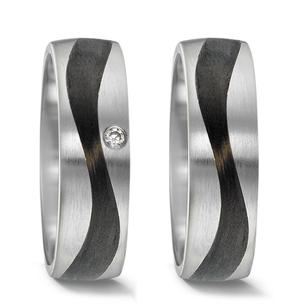 Eleganter Damen Partnerring aus robustem Edelstahl mit edler Carbon-Einlage. Das moderne Design wird durch einen funkelnden Zirkonia-Stein akzentuiert, der dem Ring einen Hauch von Glamour verleiht. Perfekt als Symbol für Liebe und Verbundenheit.