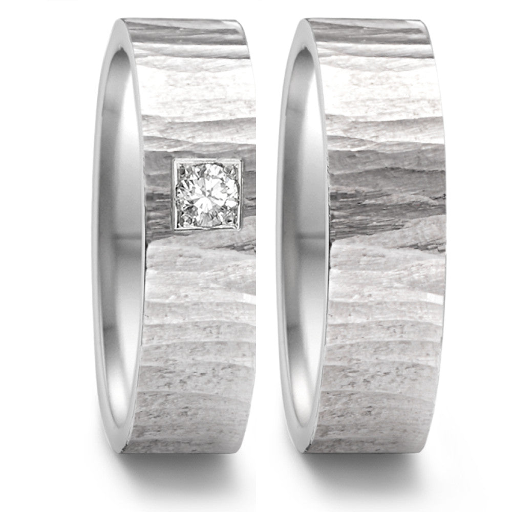 Eleganter Damen Partnerring aus hochwertigem Edelstahl mit edlem Diamanten. Die einzigartige Hammerschlag-Oberfläche verleiht dem Ring modernen Charme und zeitlose Eleganz. Perfekt als Symbol für Ihre Verbundenheit und stilvolles Accessoire für jeden Tag.