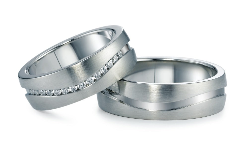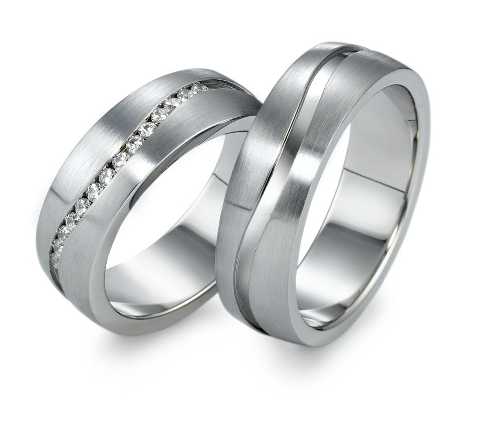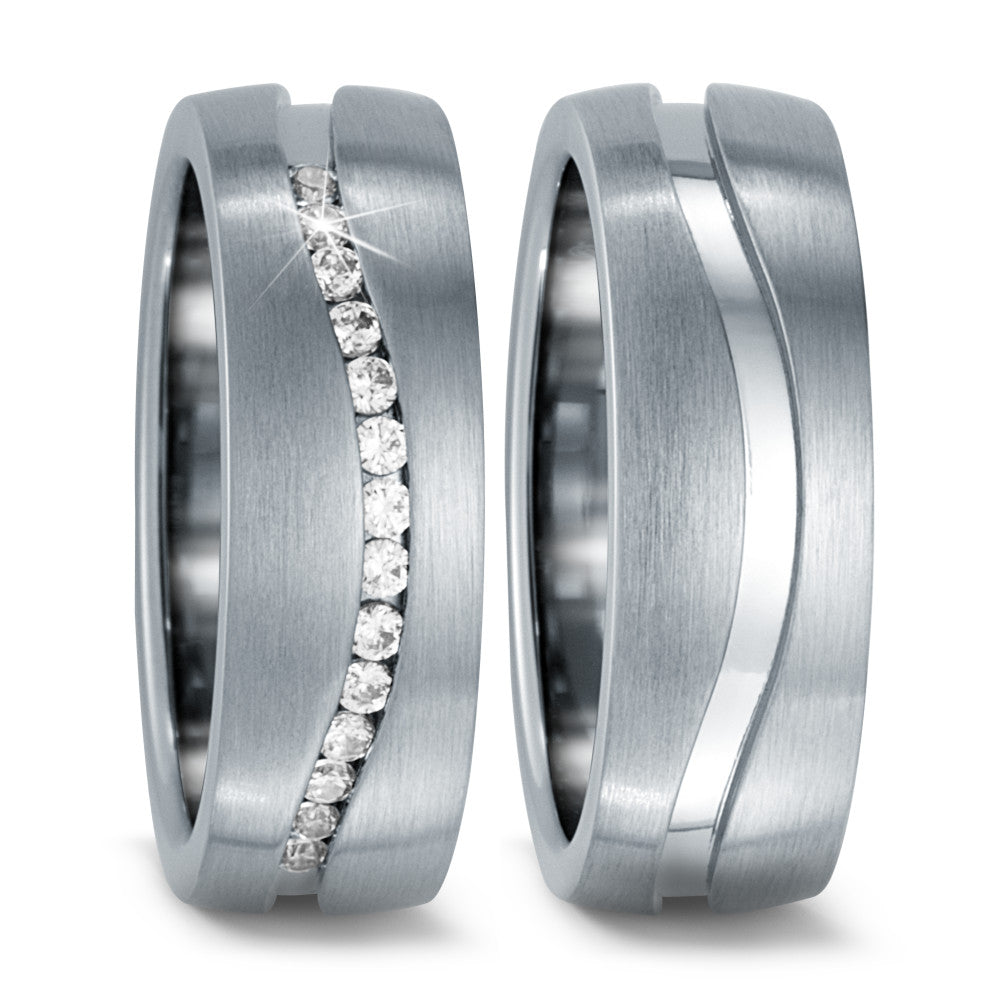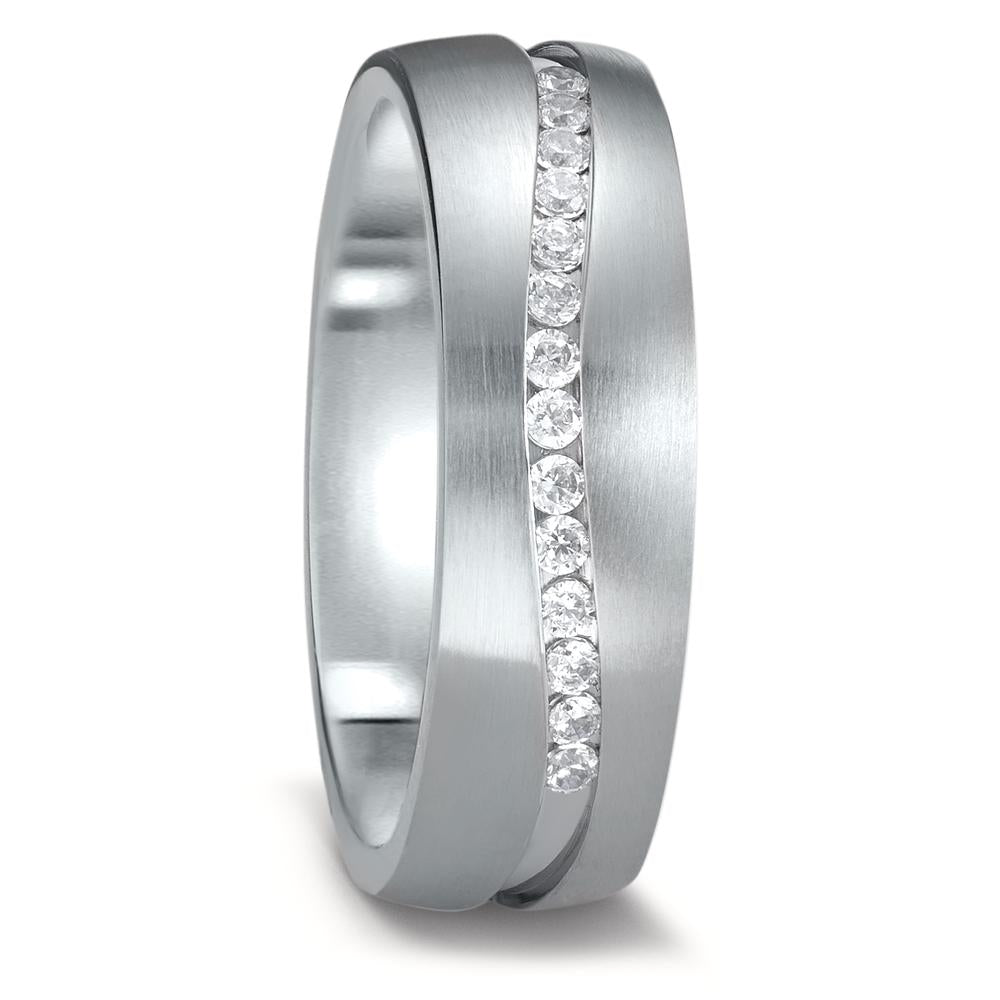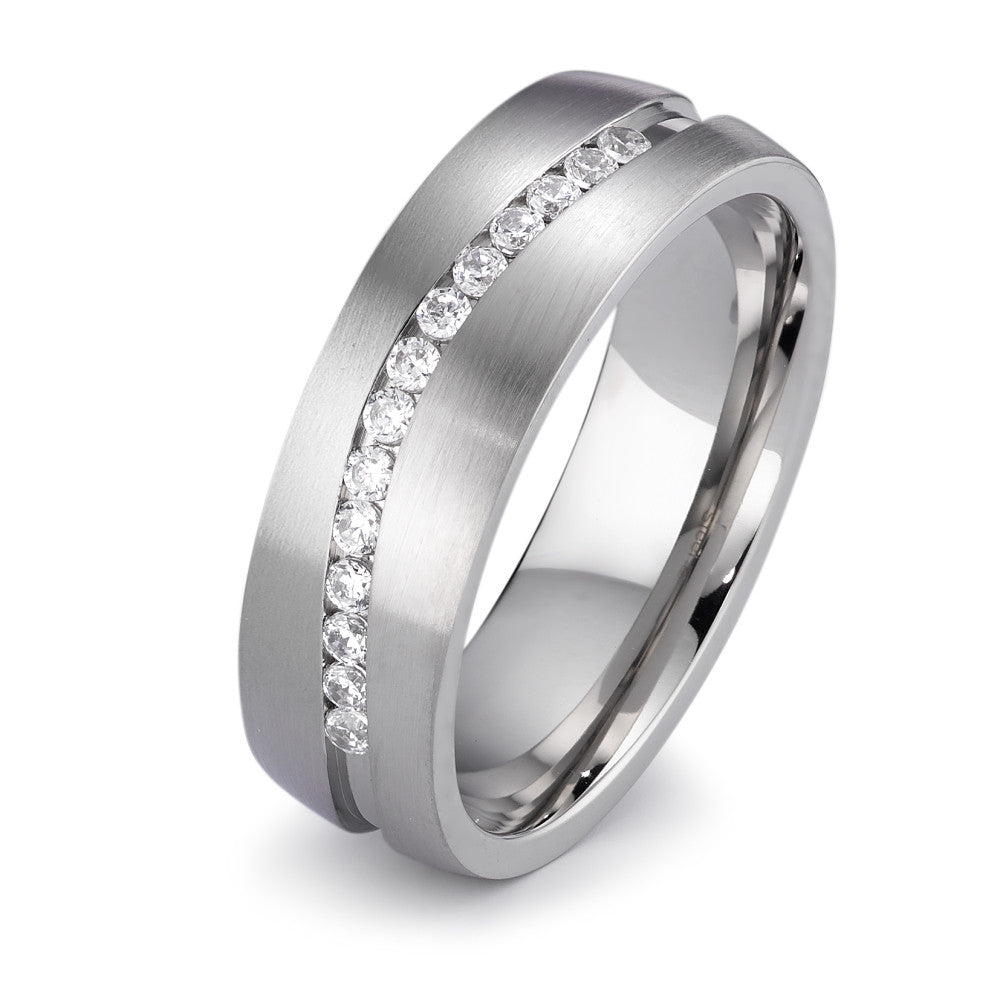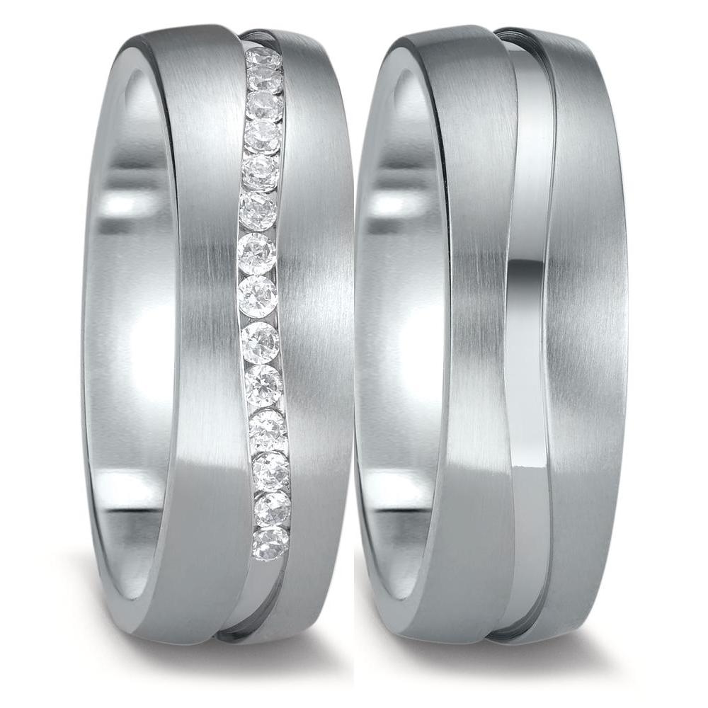 Partnerring Edelstahl Zirkonia weiss, 14 Steine