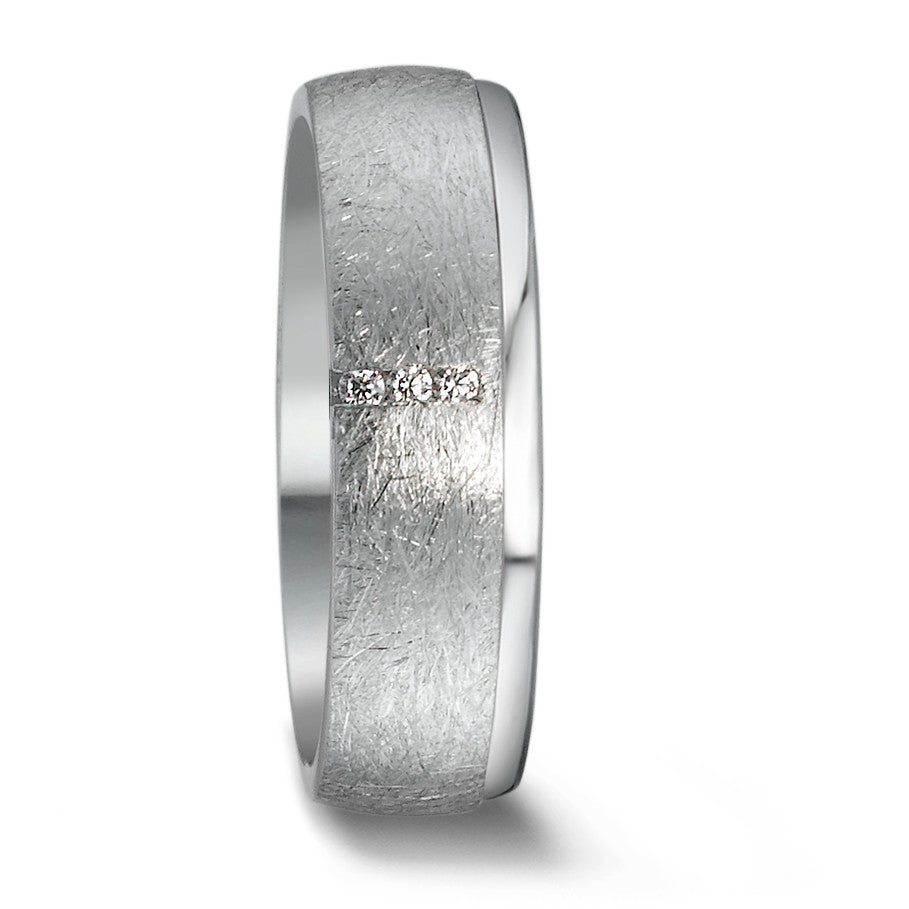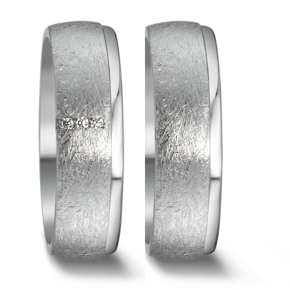 Eleganter Damen-Partnerring aus hochwertigem Silber mit einer mattierten Oberfläche und polierten Kanten. Drei funkelnde Zirkonia setzen dezente Akzente und verleihen dem Ring einen edlen Glanz. Perfekt als Symbol für Liebe und Verbundenheit.