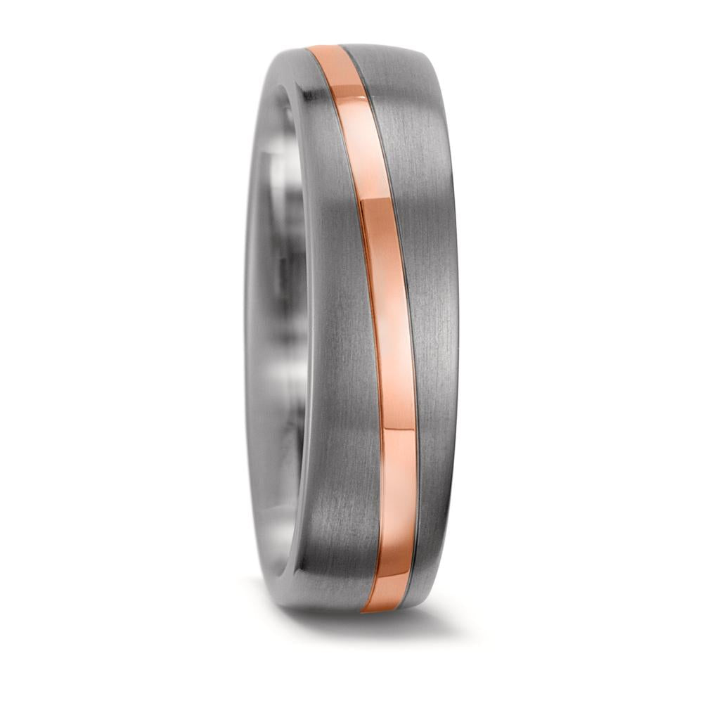 Moderner Partnerring aus robustem Titan mit einem eleganten Streifen aus 585er Rotgold. Die Kombination aus kühlem Titan und warmem Rosé verleiht dem Ring zeitlose Eleganz und hohe Beständigkeit – perfekt für Paare, die stilvolle Unvergänglichkeit suchen.