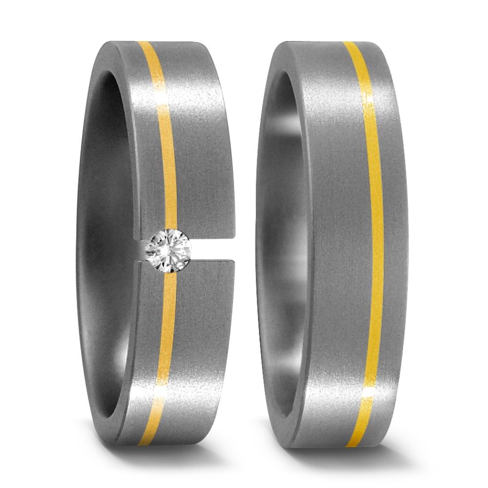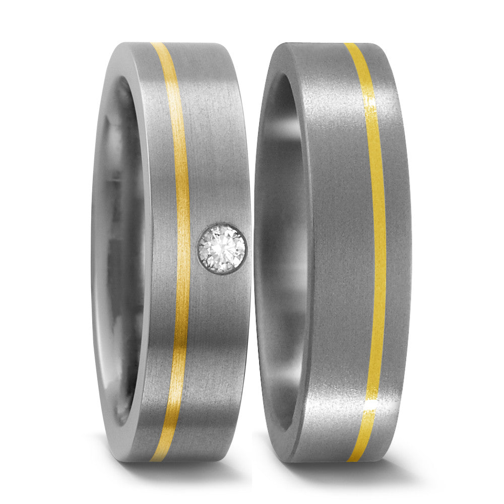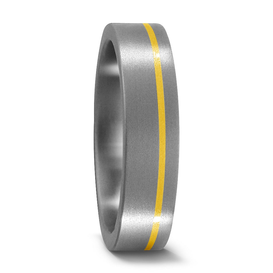 Eleganter Partnerring aus robustem Titan mit feiner 750 Gelbgold-Einlage. Das moderne Design vereint Langlebigkeit und Stil, perfekt für Paare, die Wert auf Qualität und zeitlose Ästhetik legen. Ideal als Symbol für Verbundenheit und Liebe.