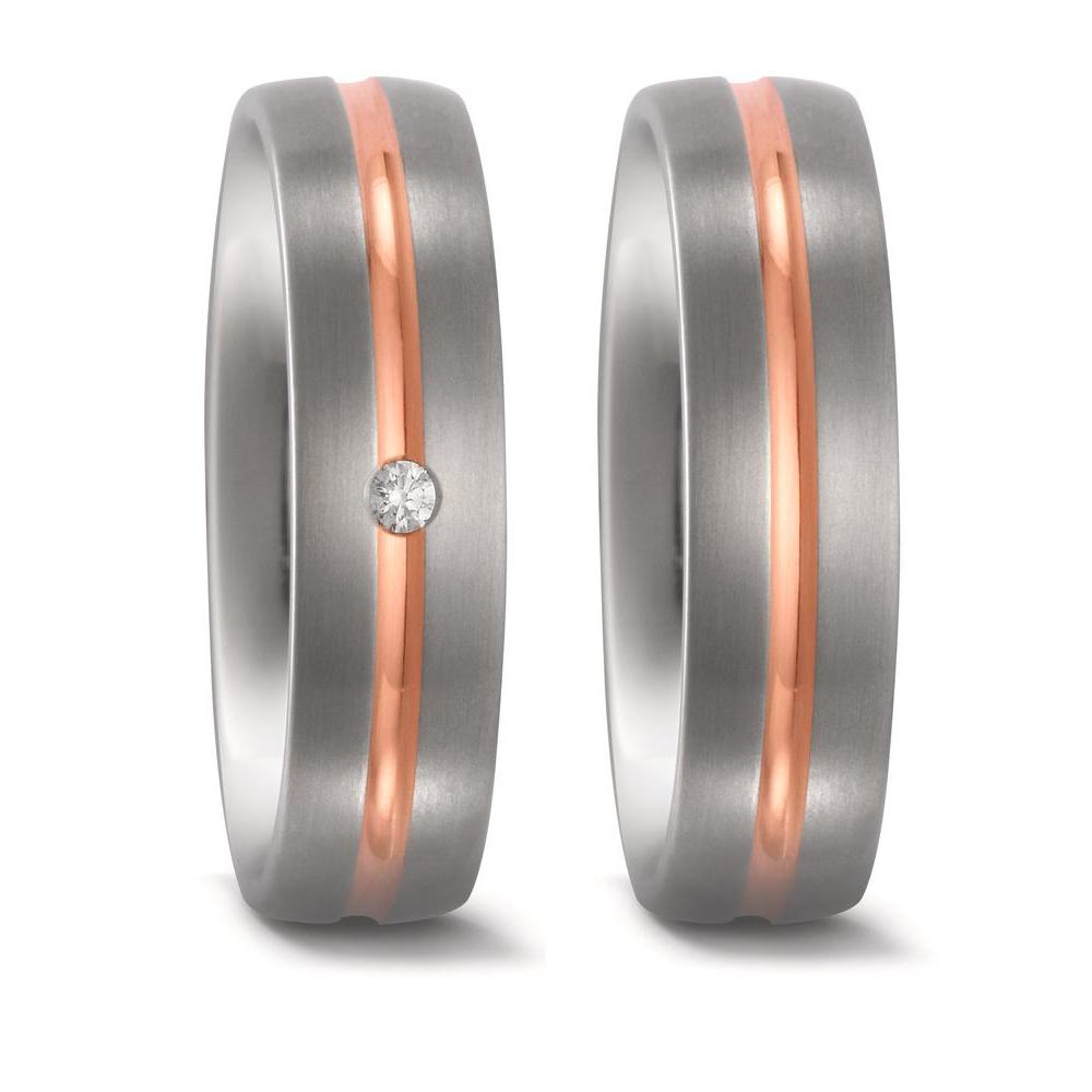 Edler Partnerring aus robustem Titan mit eleganter Einlage aus 750er Rotgold. Die matte Oberfläche kombiniert mit dem warmen Rotgoldstreifen verleiht dem Ring eine moderne und zeitlose Optik. Perfekt für Paare, die Stil und Beständigkeit schätzen.