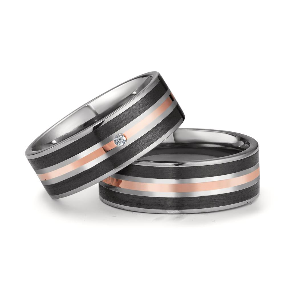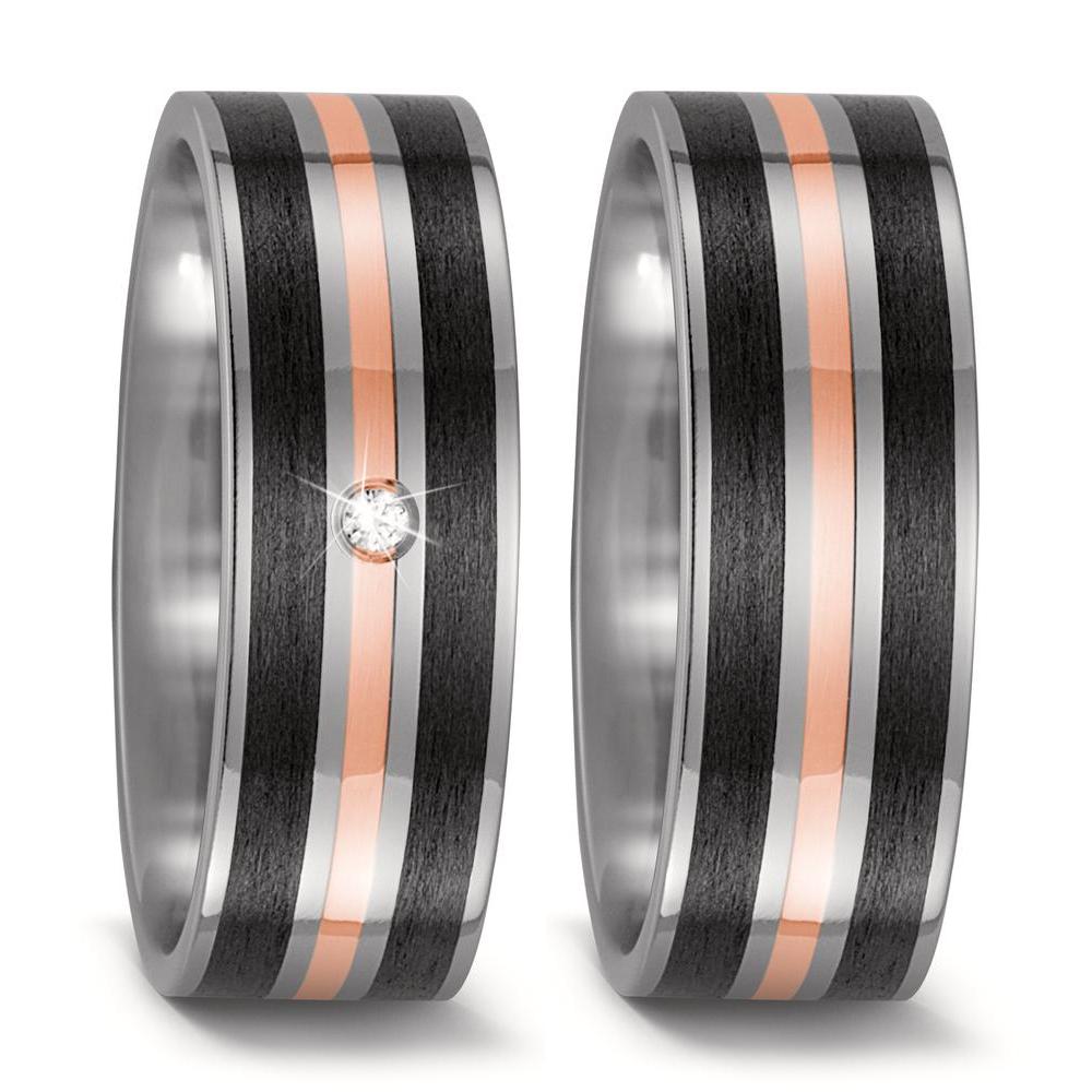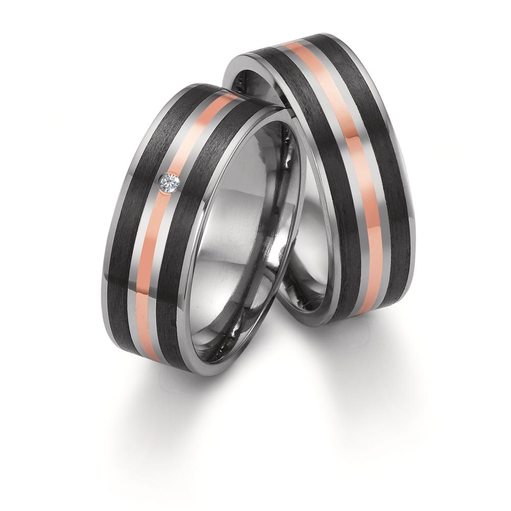 Partnerring Titan, 750/18 K Rotgold, Carbon Diamant 0.02 ct, w-si