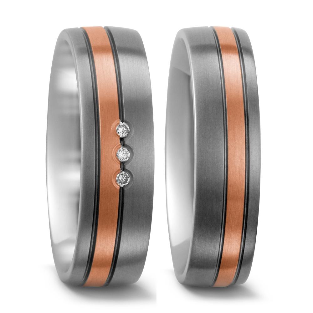 Partnerring Titan, 750/18 K Rotgold Diamant weiss, 0.03 ct, 3 Steine, w-si