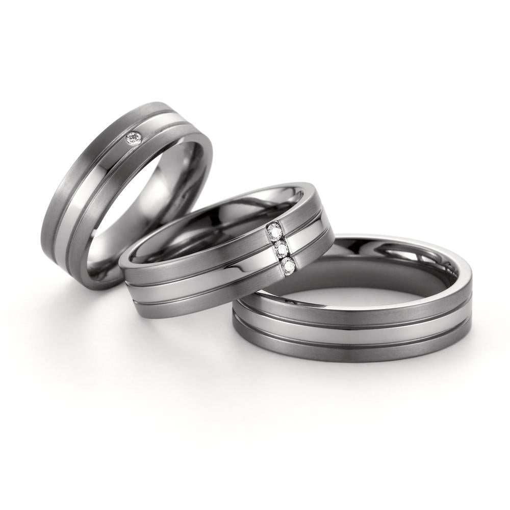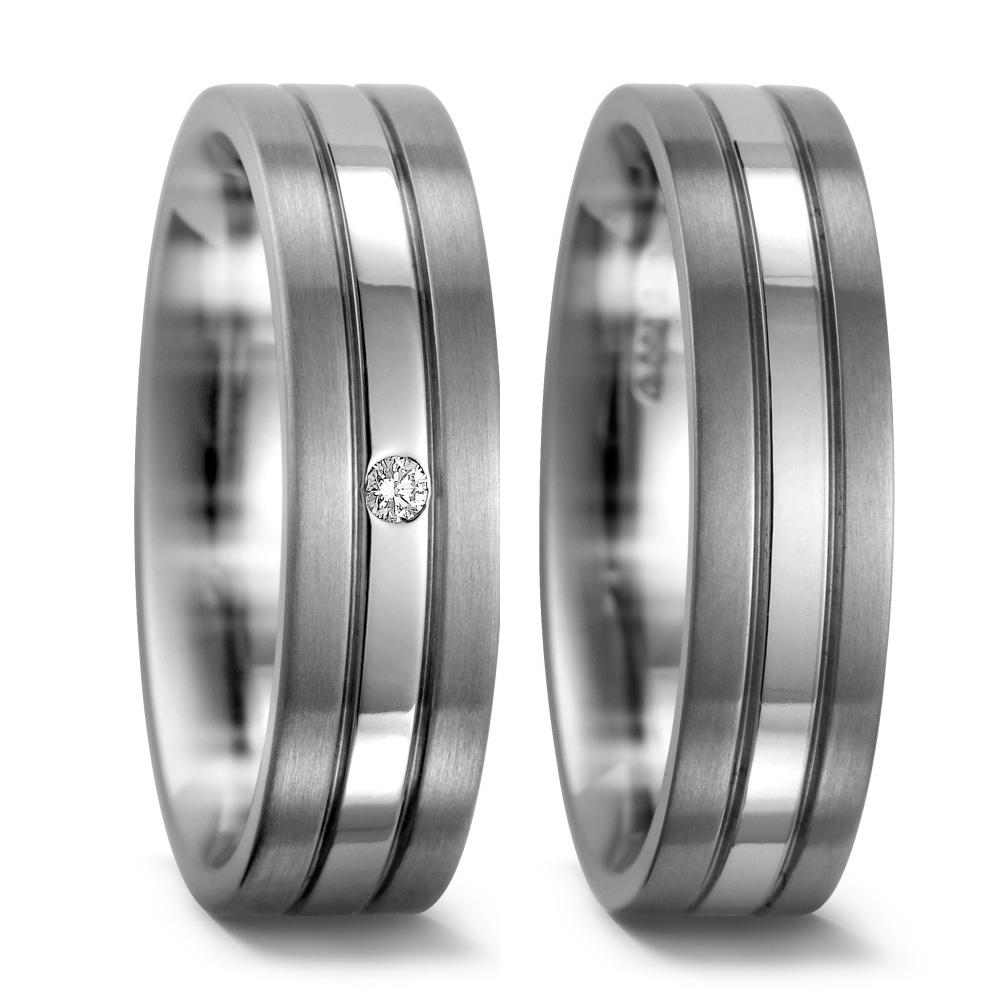 Eleganter Partnerring aus widerstandsfähigem Titan mit edler 950 Palladium-Einlage. Die mattierte Oberfläche wird durch glänzende Akzente stilvoll ergänzt. Ein moderner, zeitloser Ring, der Symbol für Verbundenheit und Beständigkeit ist. Perfekt für Paare.