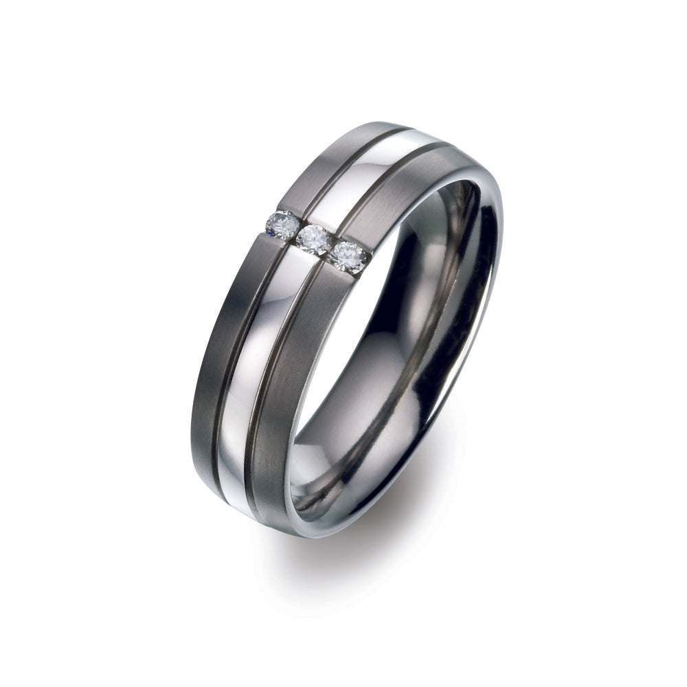 Partnerring Titan, 950 Palladium Diamant weiss, 0.06 ct, 3 Steine, w-si