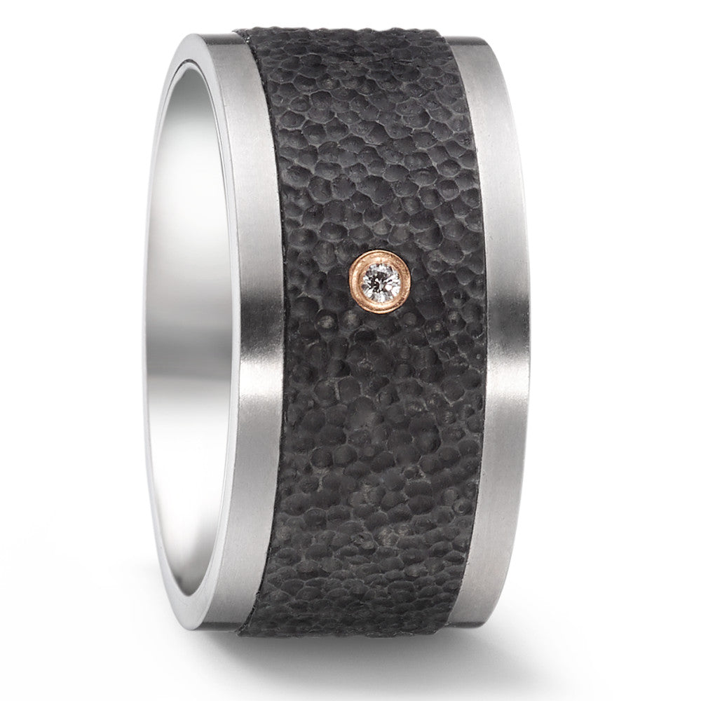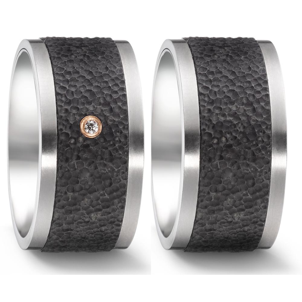 Partnerring Titan, Carbon, 750/18 K Rotgold Diamant 0.02 ct, w-si