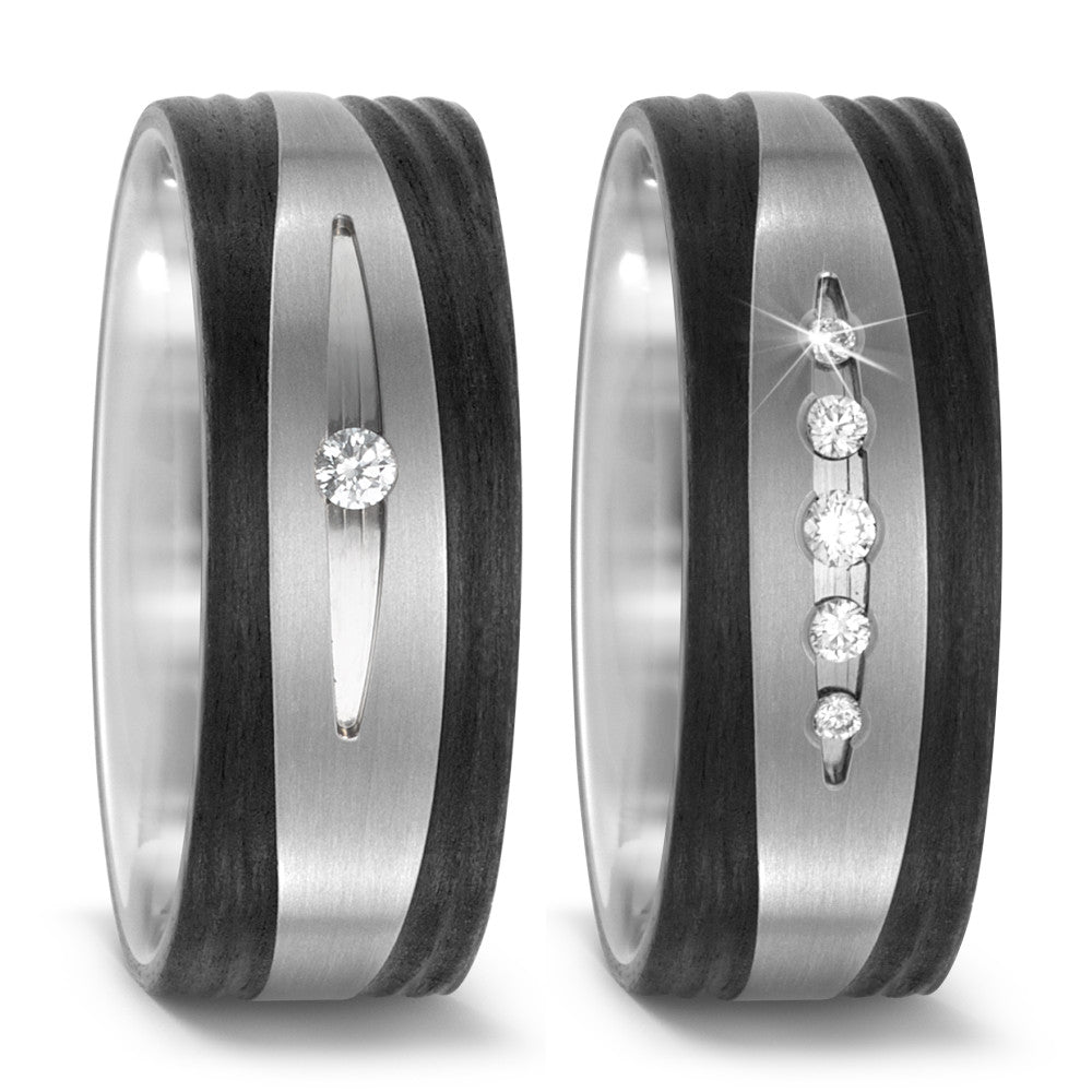 Partnerring Titan, Carbon Diamant 0.09 ct, 5 Steine, w-si