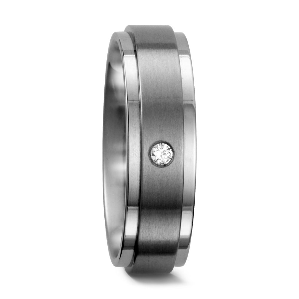 Moderner Damen Partnerring aus hochwertigem Titan, elegant mattiert mit polierten Rändern. Der Ring ist mit einem funkelnden Diamanten besetzt und symbolisiert zeitlose Verbundenheit. Leicht, robust und perfekt für jeden Tag – Ihr stilvoller Ausdruck für Liebe und Partnerschaft.