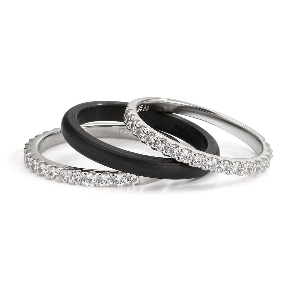 Elegantes Damen Ringset aus hochwertigem Metall mit zwei funkelnden Reihen Zirkonia-Steinen und einem mittleren schwarzen Ring. Modernes Design, das stilvoll Alltag und besondere Anlässe ergänzt. Perfektes Geschenk für Frauen, die zeitlose Klasse lieben.
