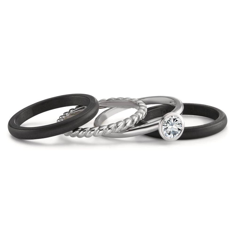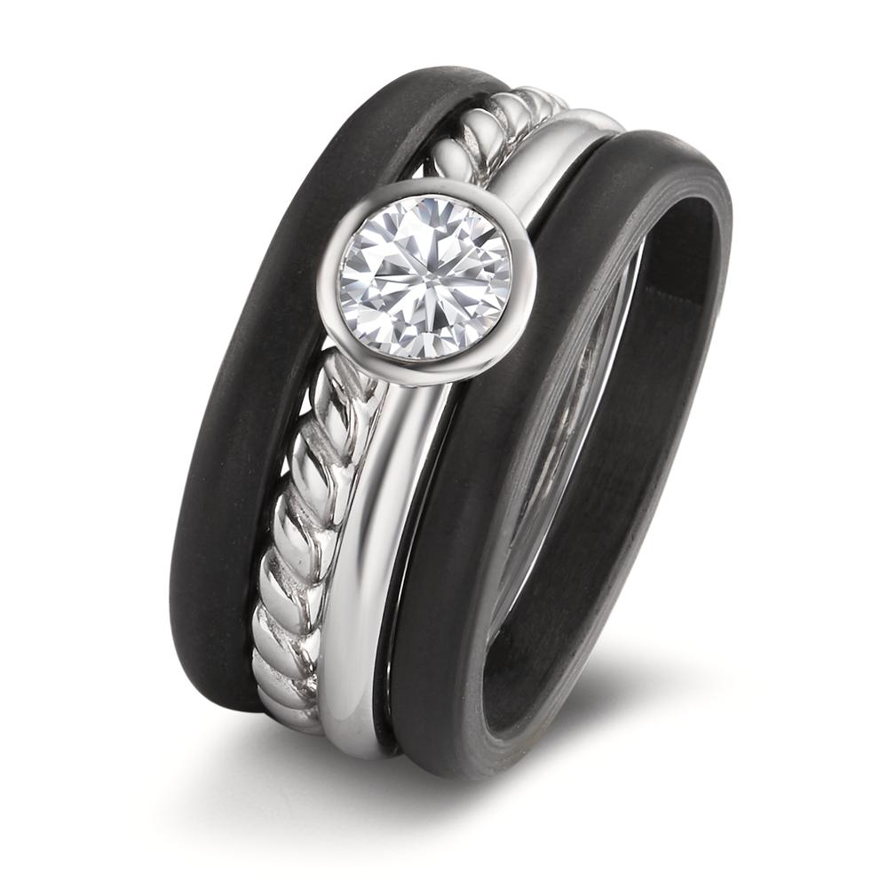 Eleganter Damenring aus hochwertigem Silber kombiniert mit modernem Carbon. Das Design wird durch einen funkelnden Zirkonia in Zargenfassung stilvoll abgerundet. Ein zeitloses Schmuckstück, das jedem Outfit einen besonderen Akzent verleiht. Perfekt für jeden Anlass.