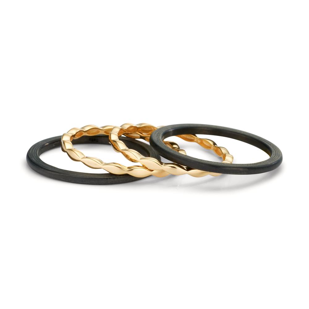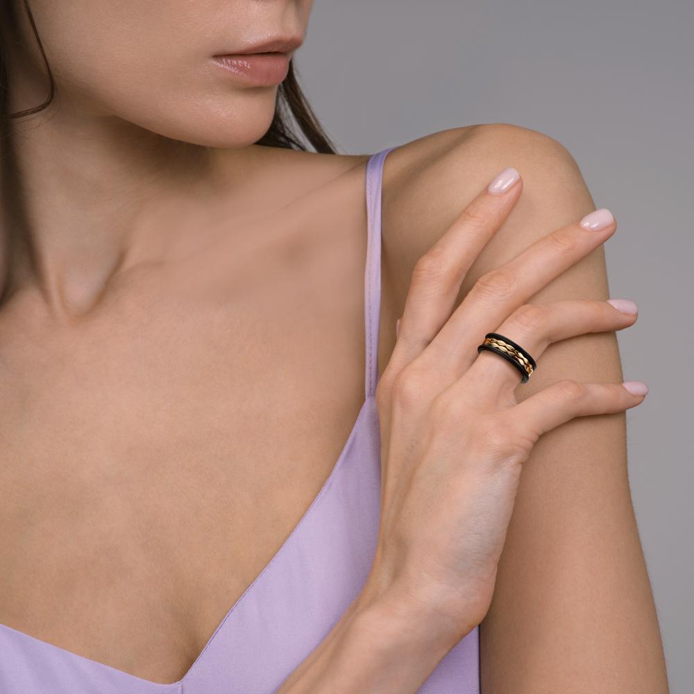 Dieses elegante Damen Ringset vereint modernen Stil und zeitlose Eleganz. Die Kombination aus glänzendem Gold und schwarzem Akzent verleiht dem Schmuckstück einen besonderen Look. Perfekt für jeden Anlass und ein edles Highlight für Ihre Fingerspitzen.