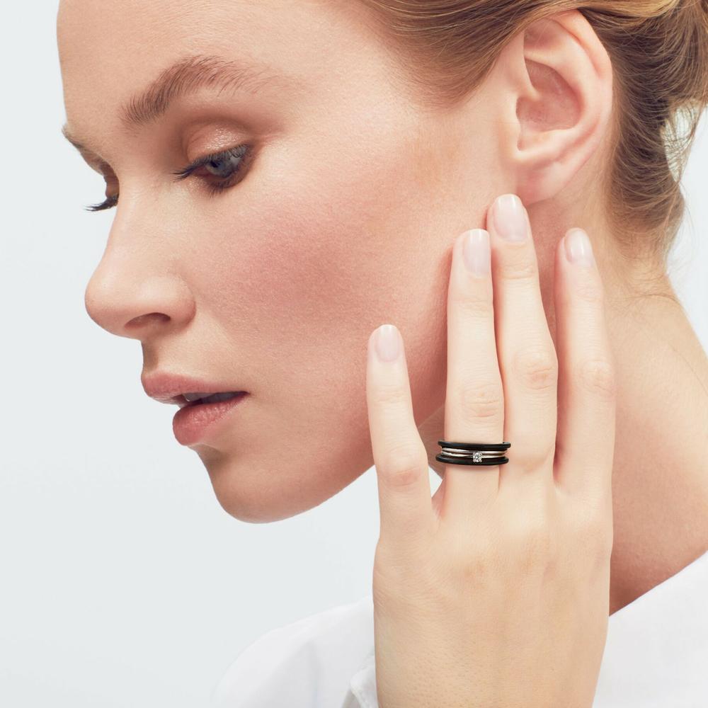 Dieses exklusive Damen Ringset vereint Eleganz und Modernität. Gefertigt aus hochwertigem Material, besticht der Ring durch einen funkelnden Diamanten, der in einem stilvollen schwarzen und silbernen Design eingefasst ist. Zeitloser Schmuck für jeden Anlass.