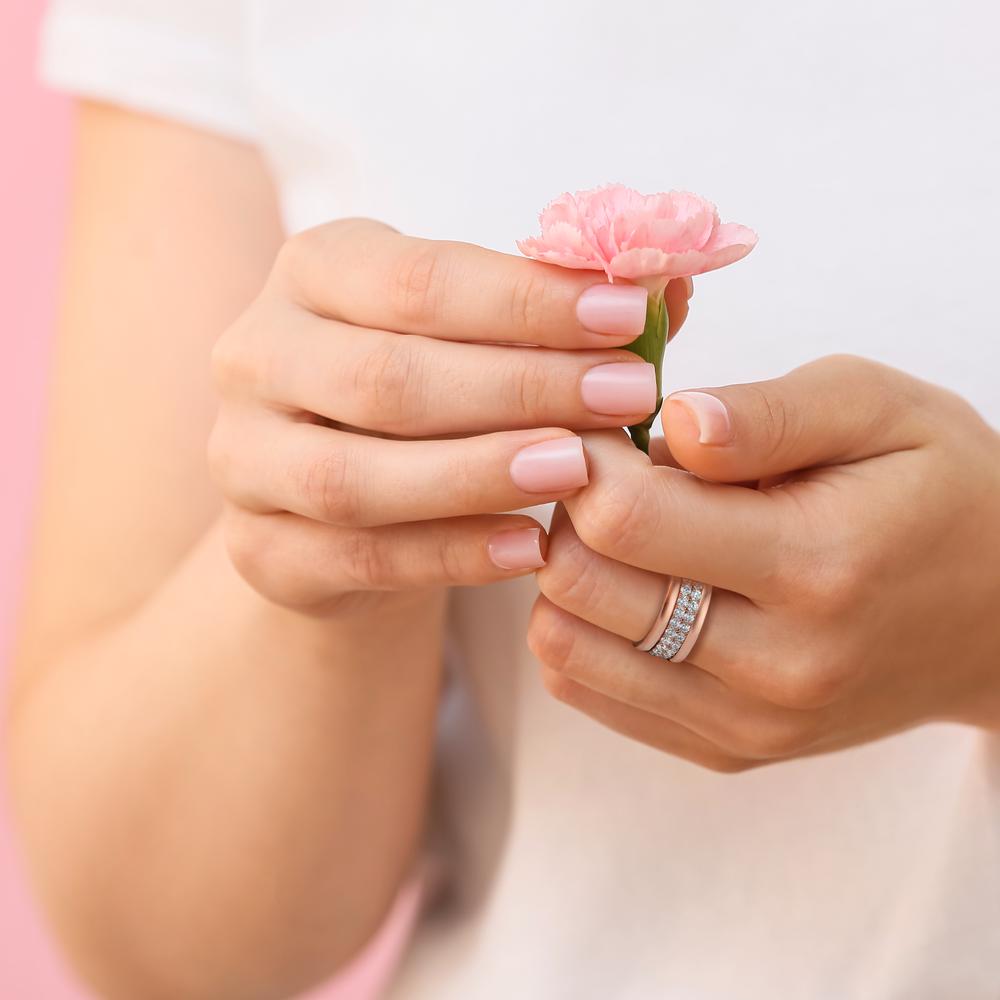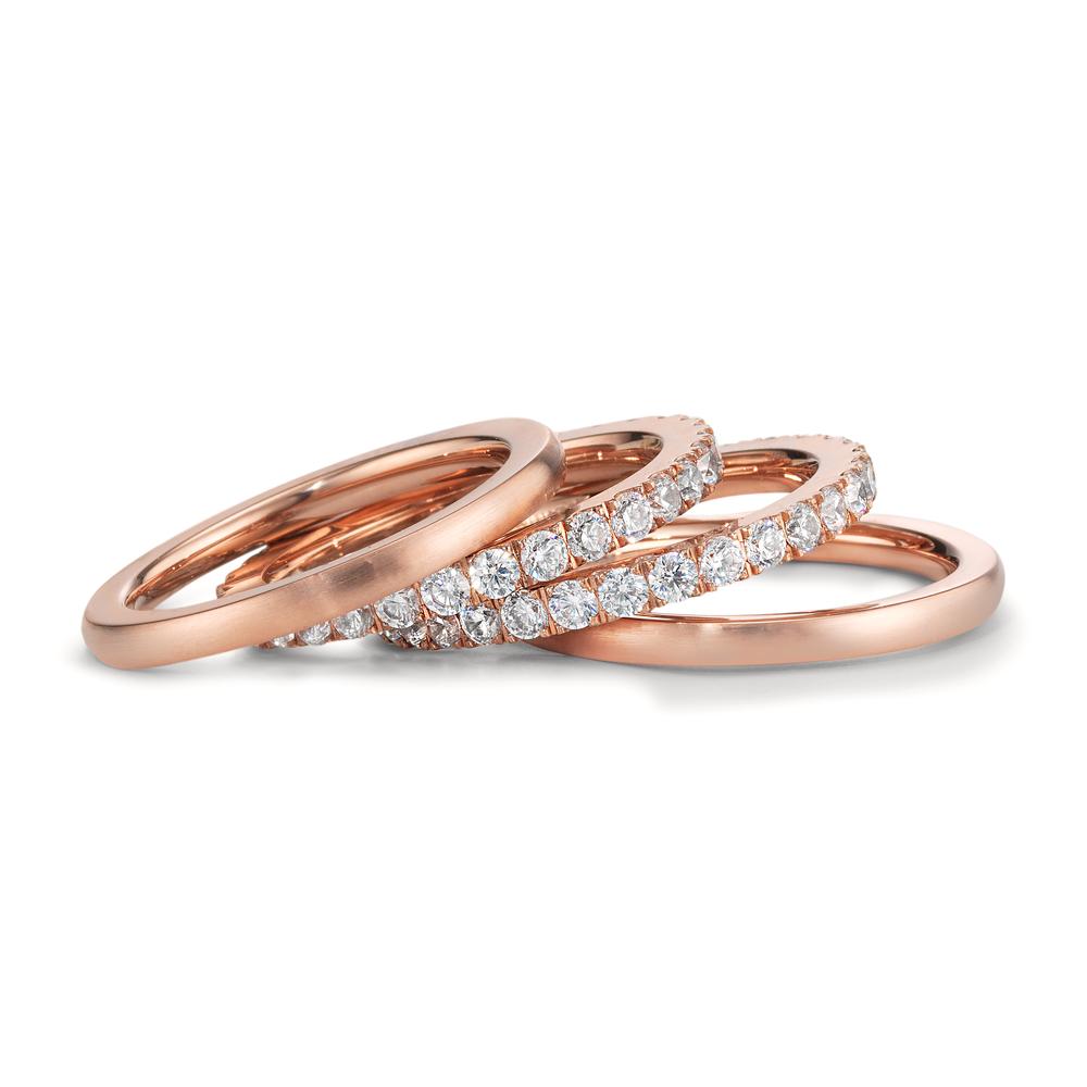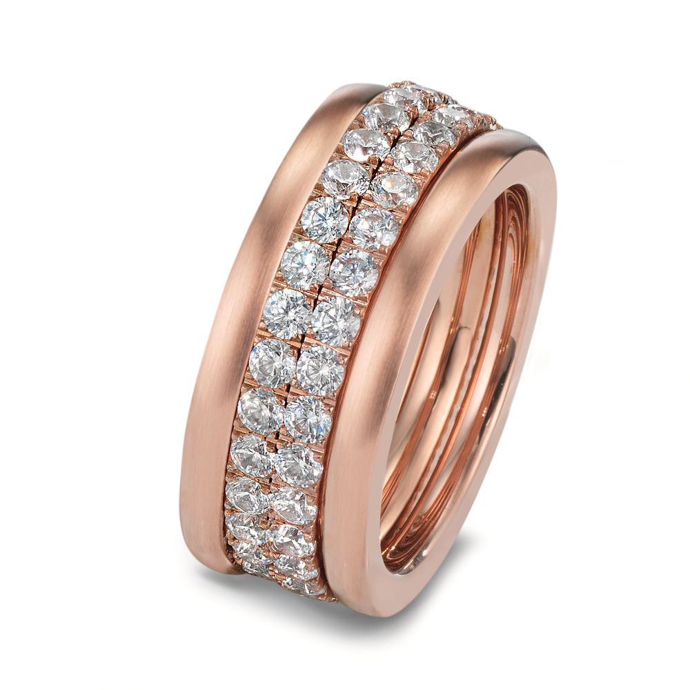 Elegantes Damen Ringset in warmem Roségoldton, veredelt mit funkelnden Zirkonia-Steinen. Das zeitlose Design vereint zwei Ringe, die zusammen getragen ein harmonisches Gesamtbild ergeben. Perfektes Accessoire für besondere Anlässe oder den Alltag.