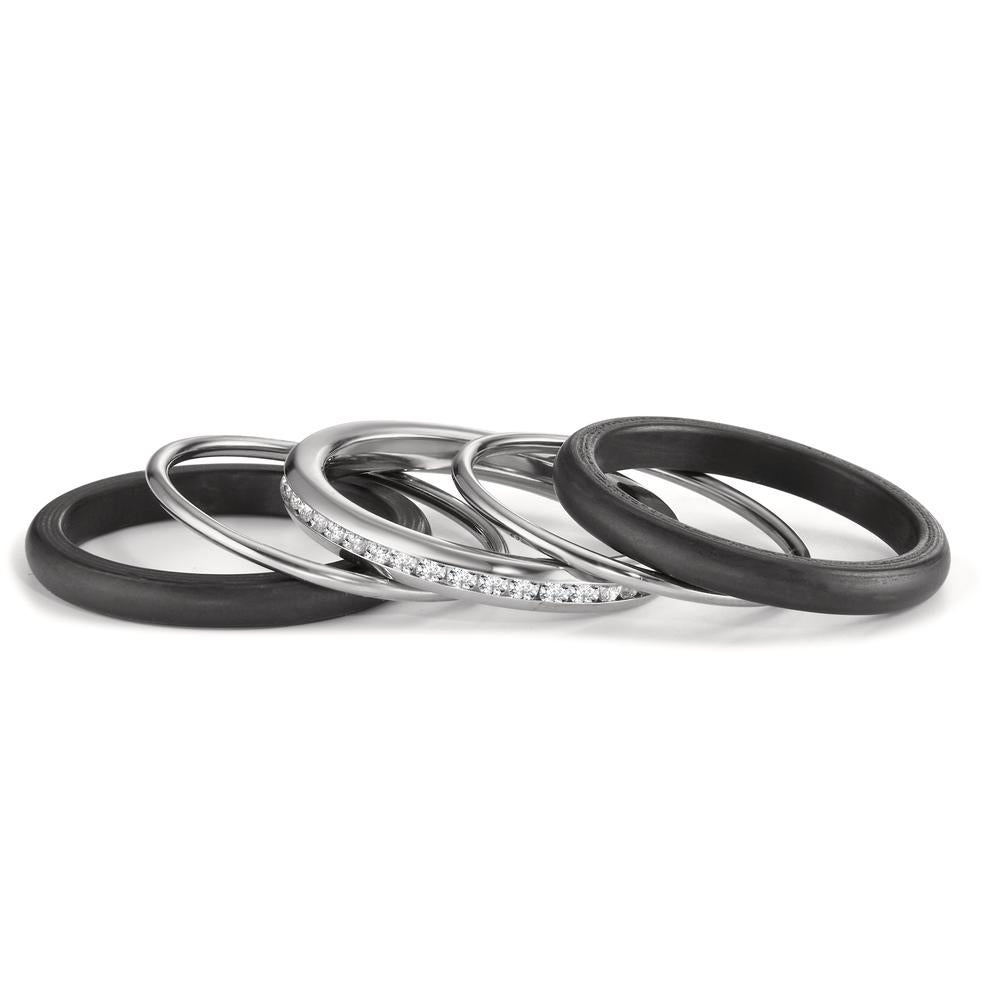 Moderner Damen-Fingerring aus hochwertigem Edelstahl und edlem Carbon. Verziert mit funkelnden Zirkonia-Steinen, die für glamouröse Akzente sorgen. Das exklusive Design verbindet Eleganz und Nachhaltigkeit – ein perfektes Schmuckstück für jeden Anlass.