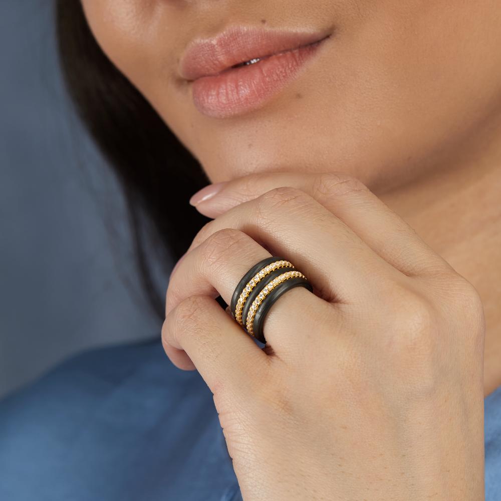 Moderner Damen Fingerring aus edlem Silber mit schwarzem Carbon-Inlay. Zwei funkelnde Reihen Zirkonia setzen elegante Akzente und verleihen dem Design eine besondere Raffinesse. Ein stilvoller Begleiter für jeden Anlass, der Luxus und Trendbewusstsein vereint.