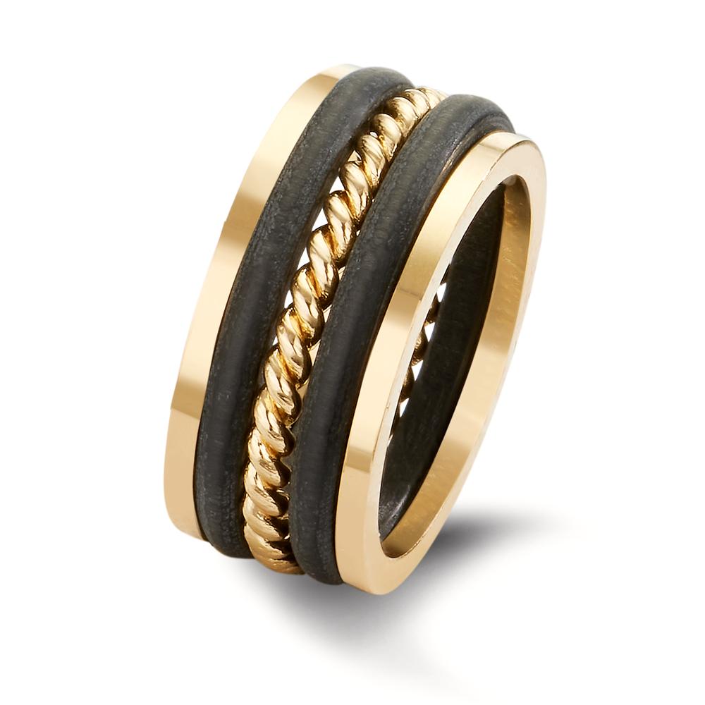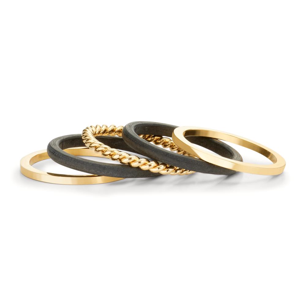 Dieses elegante Damen Ringset vereint goldglänzende Metallringe mit schwarzen Akzenten und einem gedrehten Mittelring. Das markante Design sorgt für einen modischen Look und ist perfekt für stilbewusste Frauen, die zeitlosen Schmuck mit einem modernen Twist lieben.